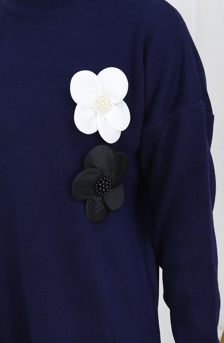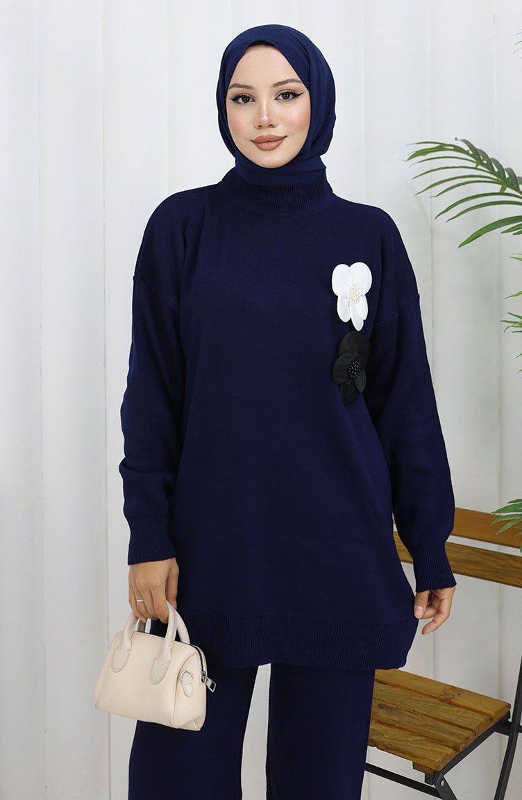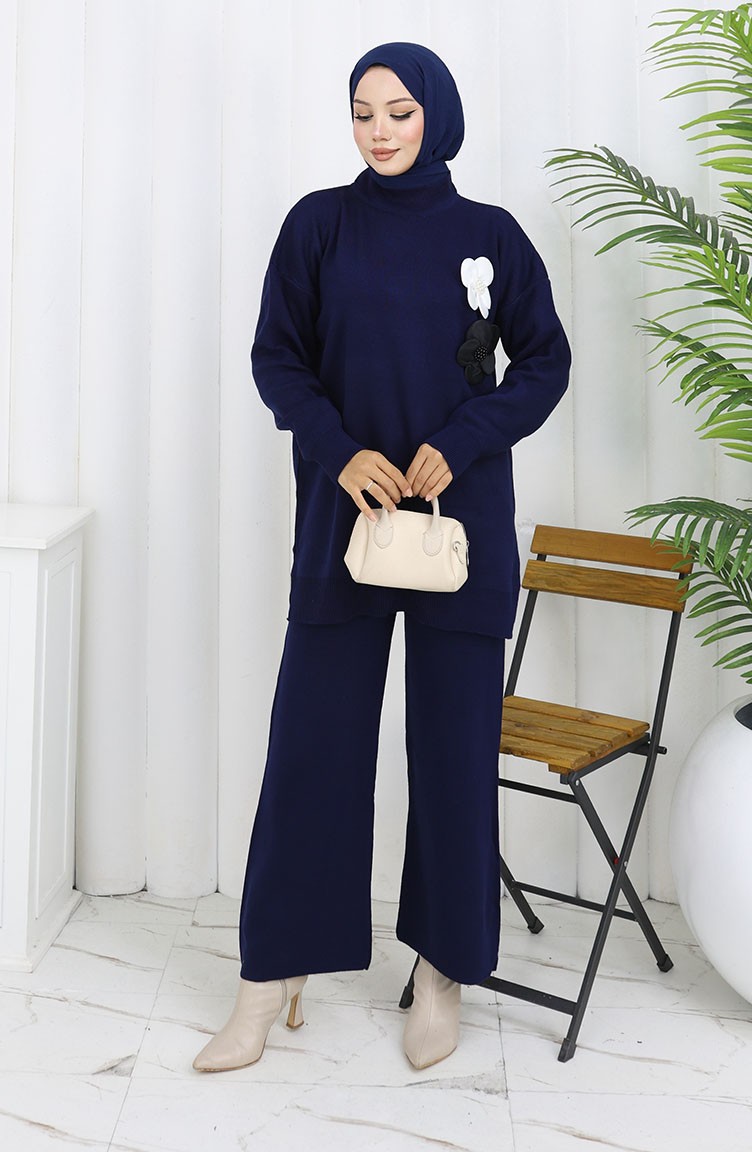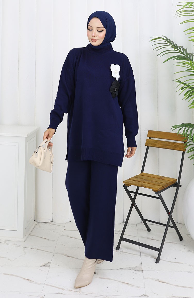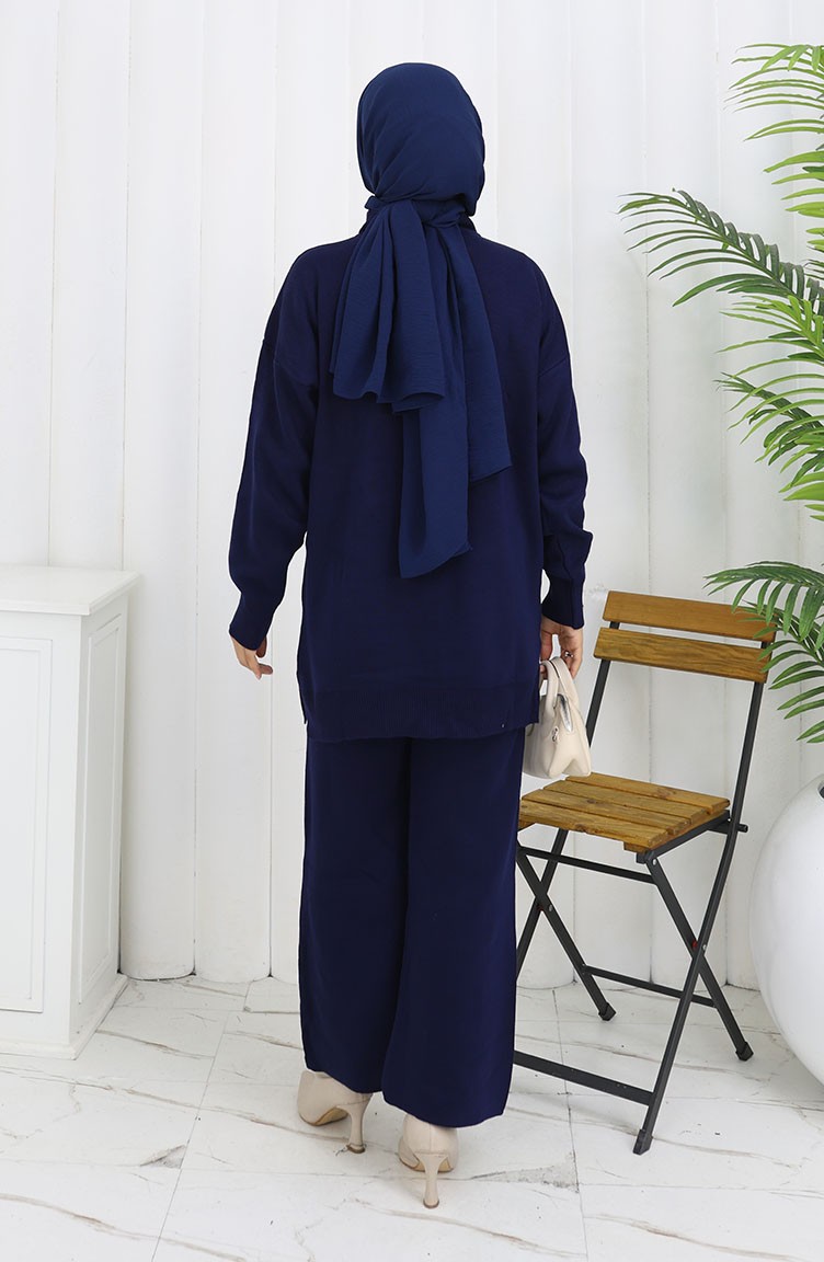 بدلة من قطعتين، سترة وبنطلون بياقة مدورة، لون أزرق داكن، رقم 1015-02 1015-02