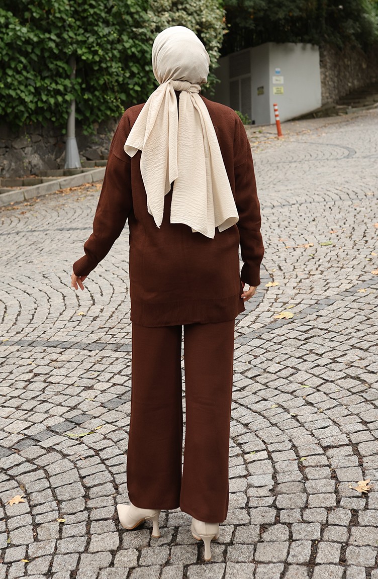 بدلة محبوكة من قطعتين، سترة وبنطلون بياقة مدورة، لون بني، 1015-05 1015-05