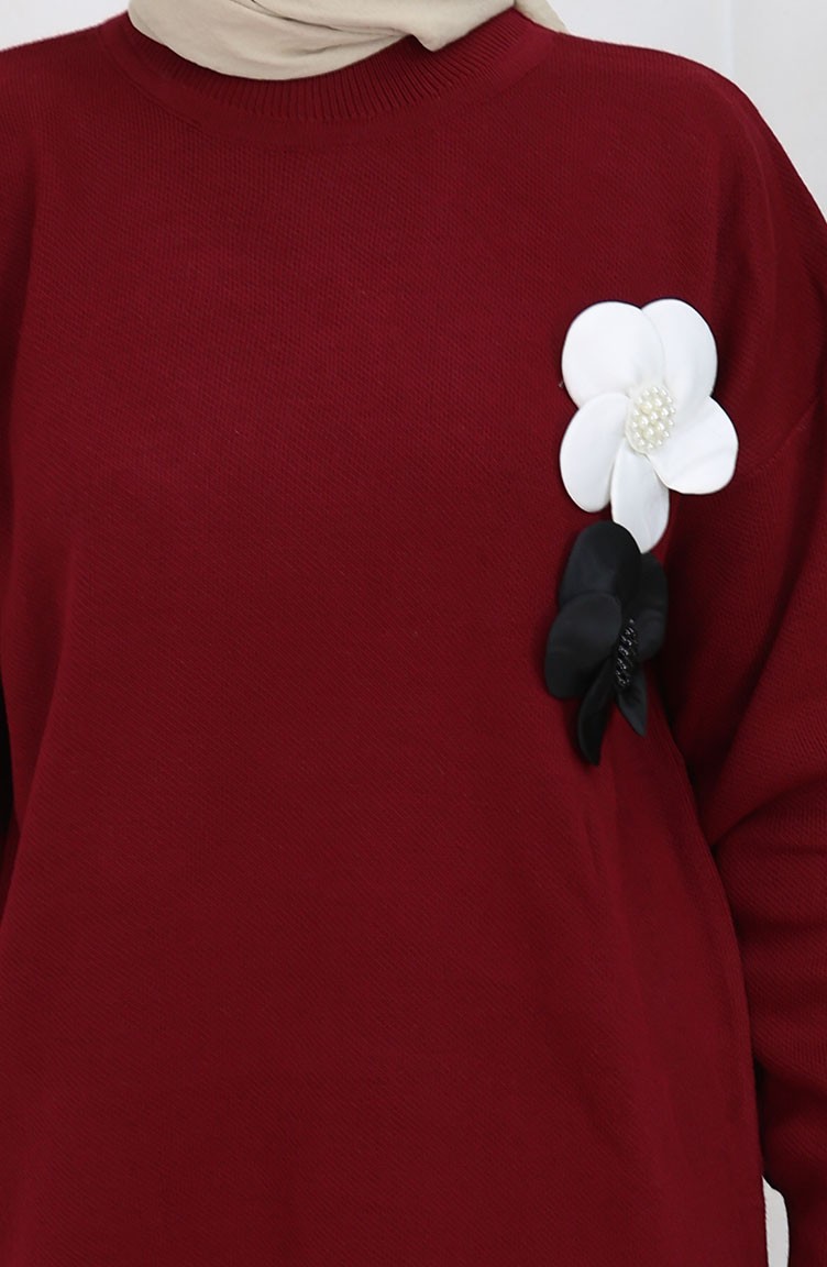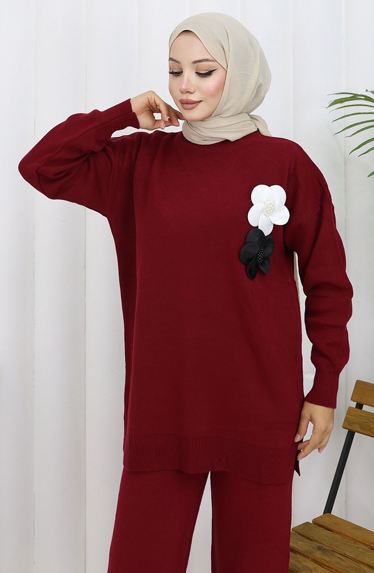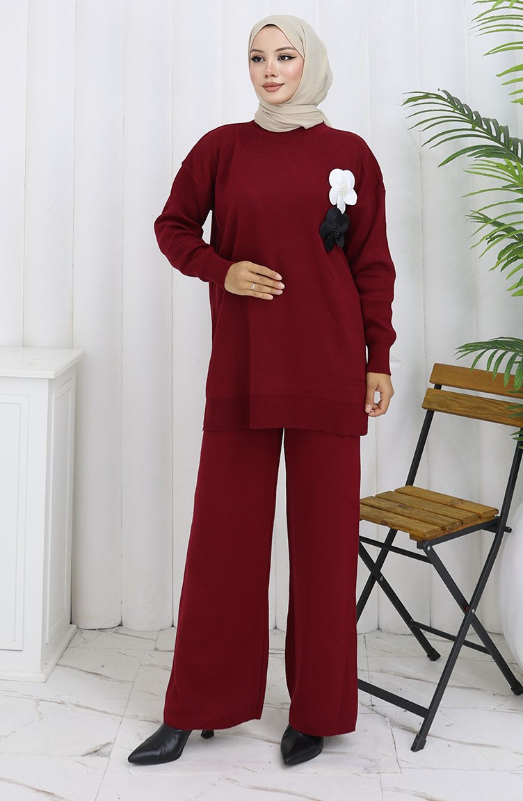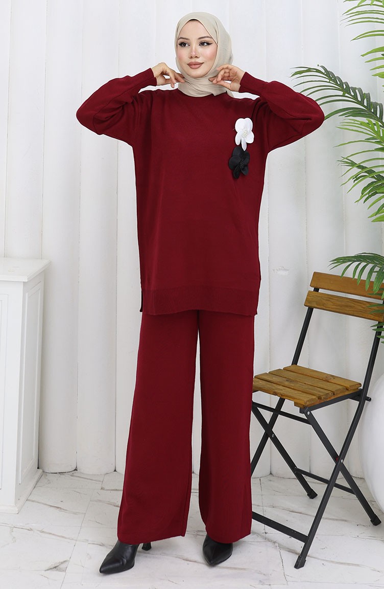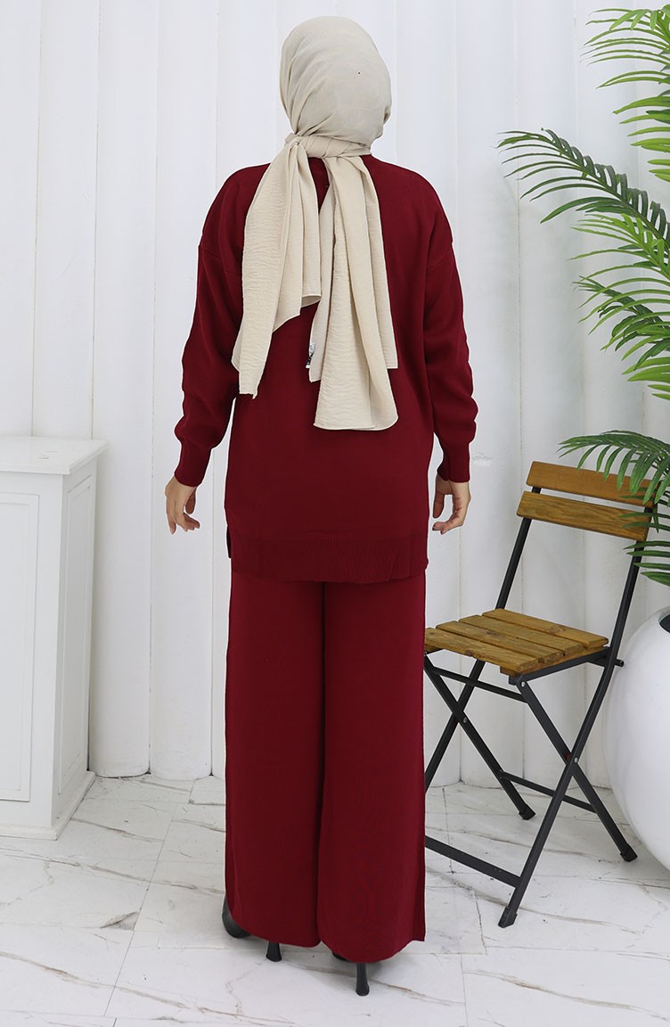 بدلة محبوكة من قطعتين، سترة وبنطلون بياقة مدورة، لون أحمر قرمزي، 1015-06 1015-06