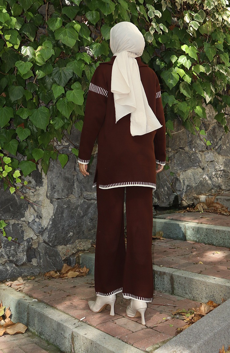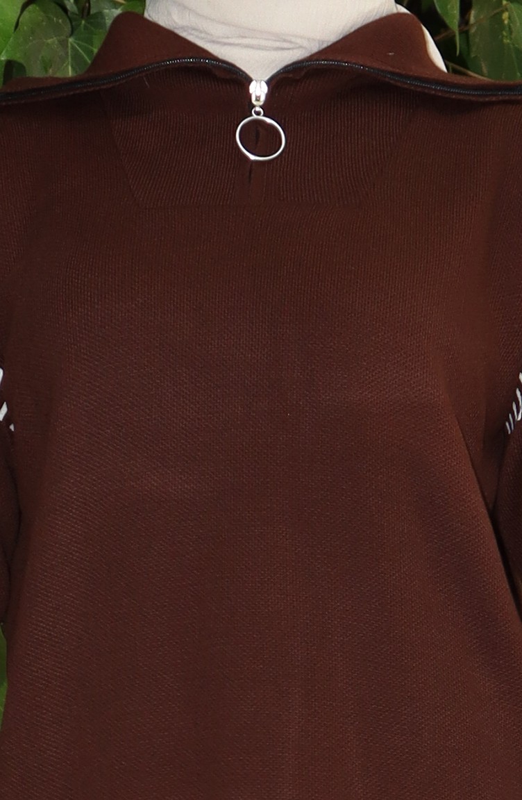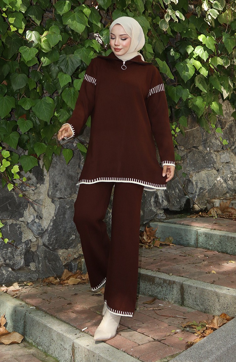 بدلة محبوكة من قطعتين مع سحاب وياقة وبنطلون 1061-08 بني 1061-08