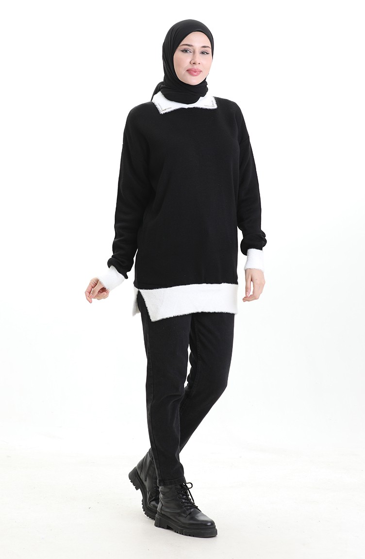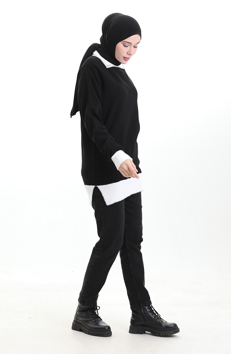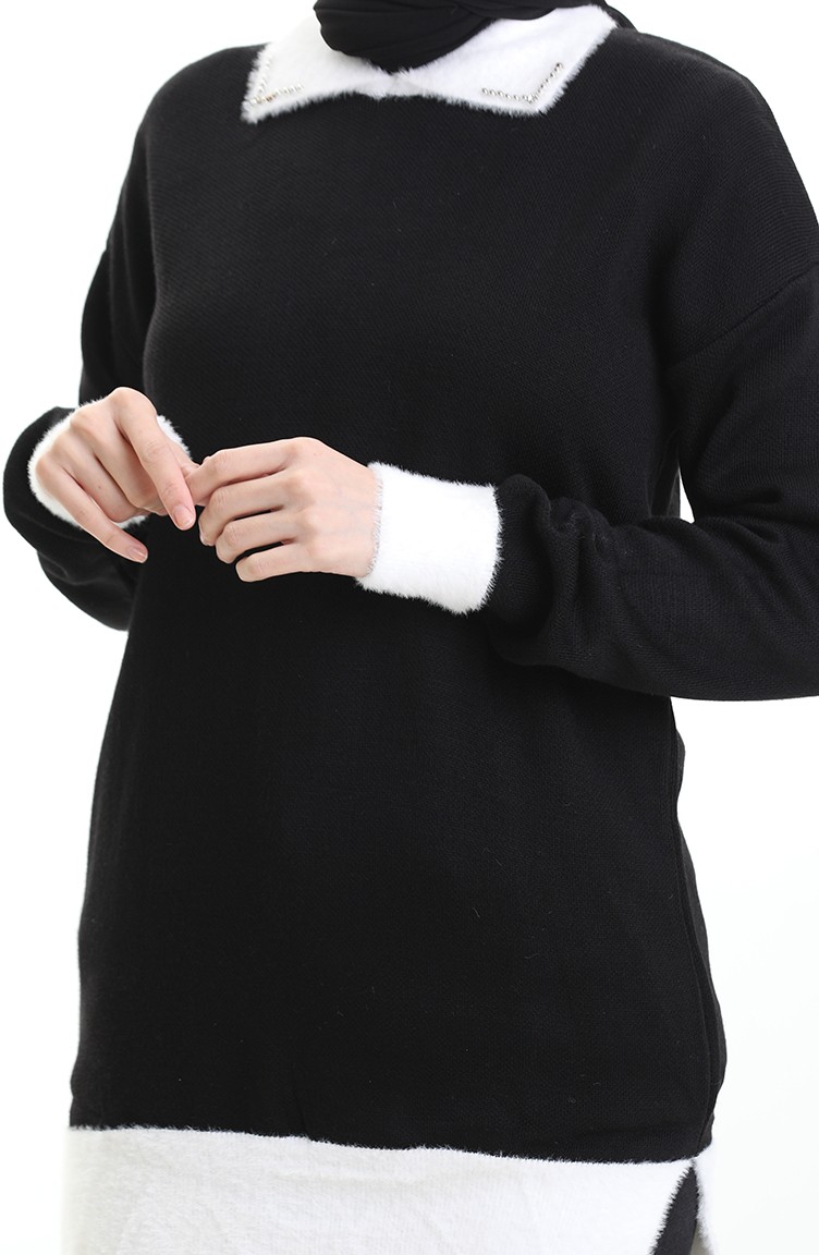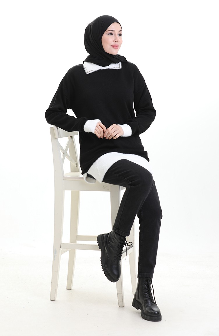 تونيك محبوك مزين بالخرز 3002-01 أسود 3002-01