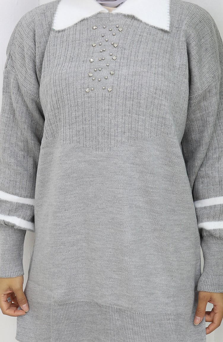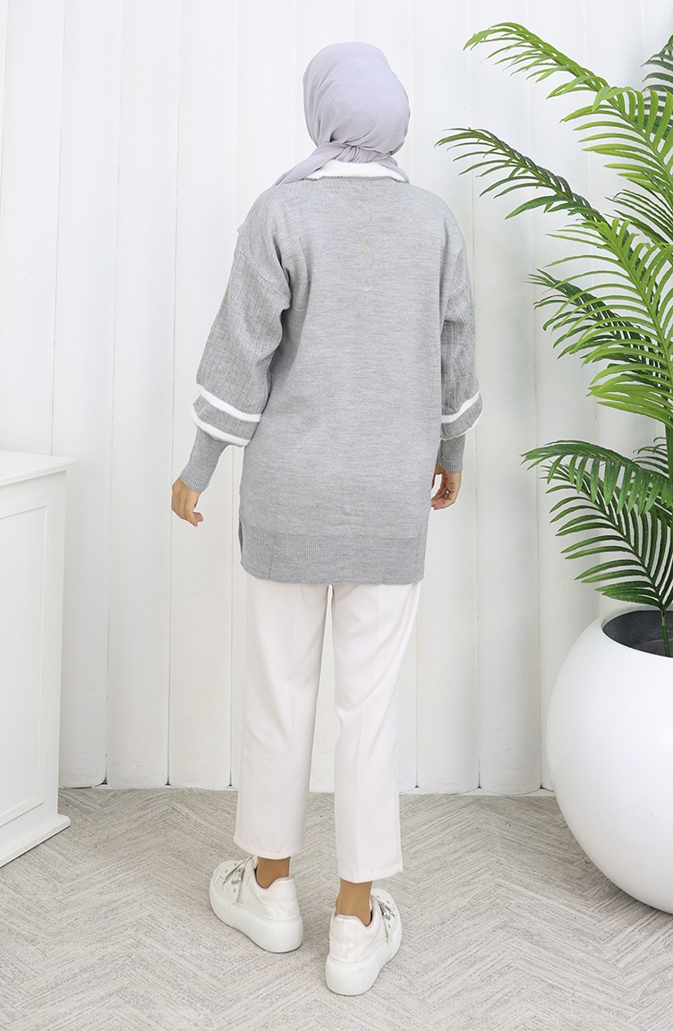 سترة محبوكة بأكمام منفوخة وياقة 3007-05 رمادية 3007-05