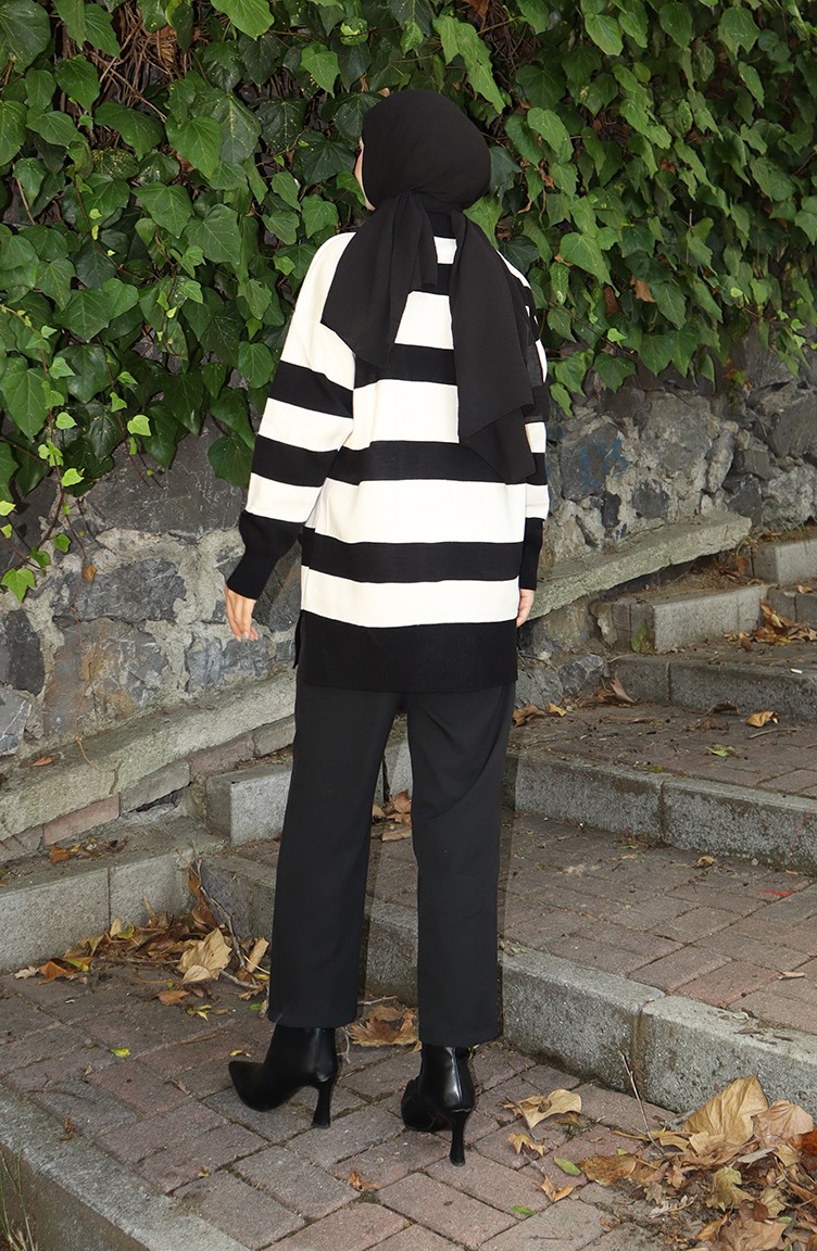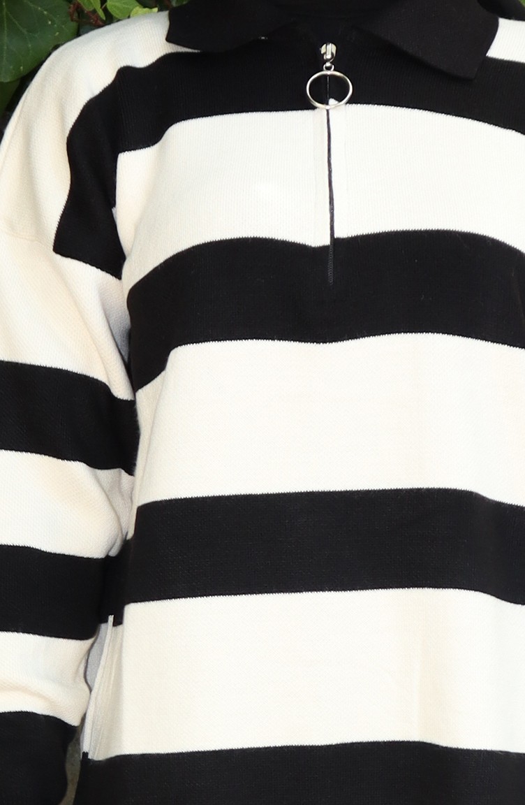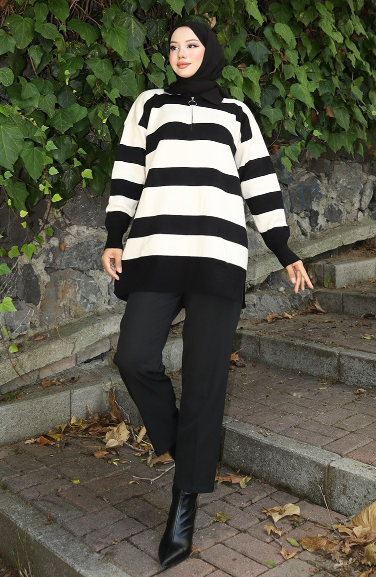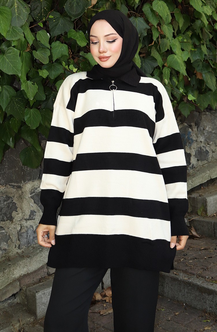 سترة محبوكة بسحاب بألوان متعددة 3003-11 أسود بيج 3003-11