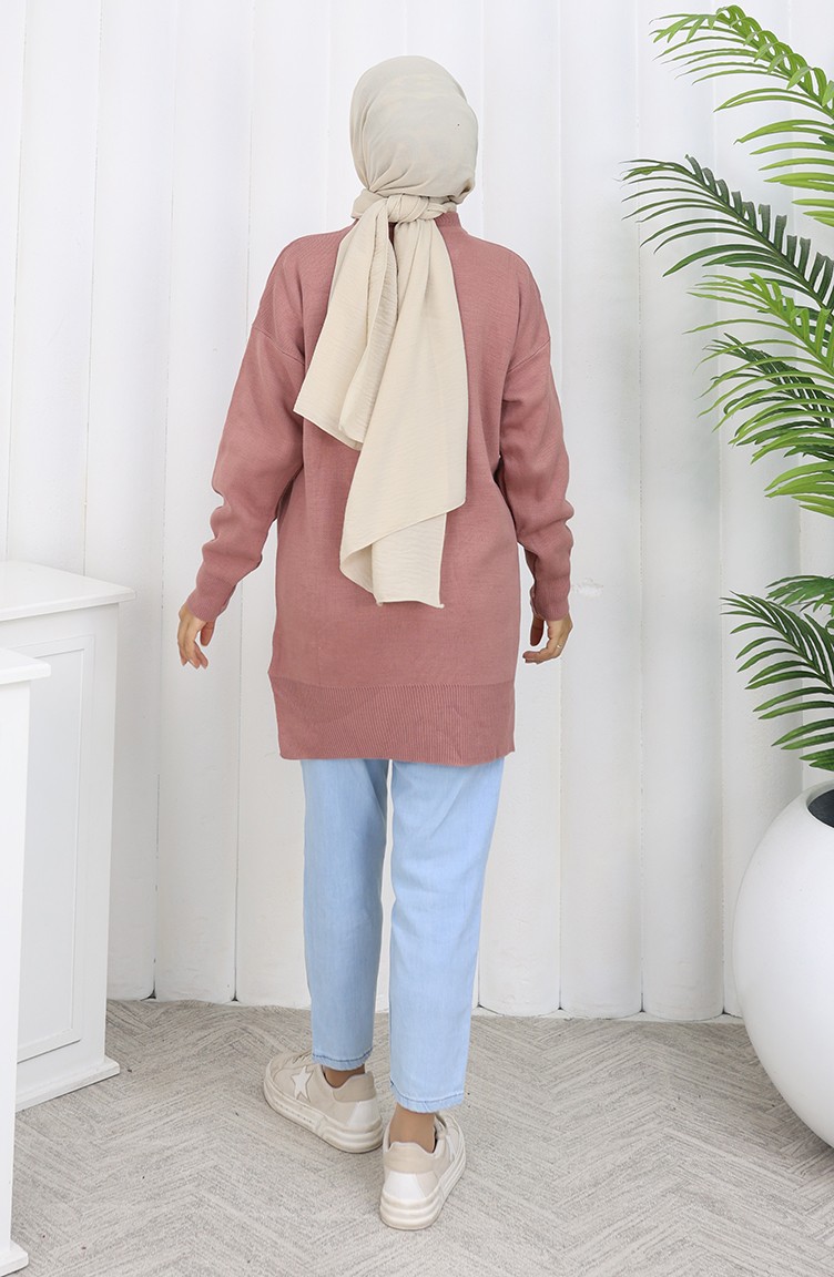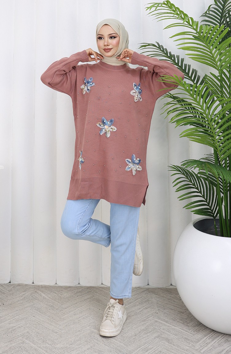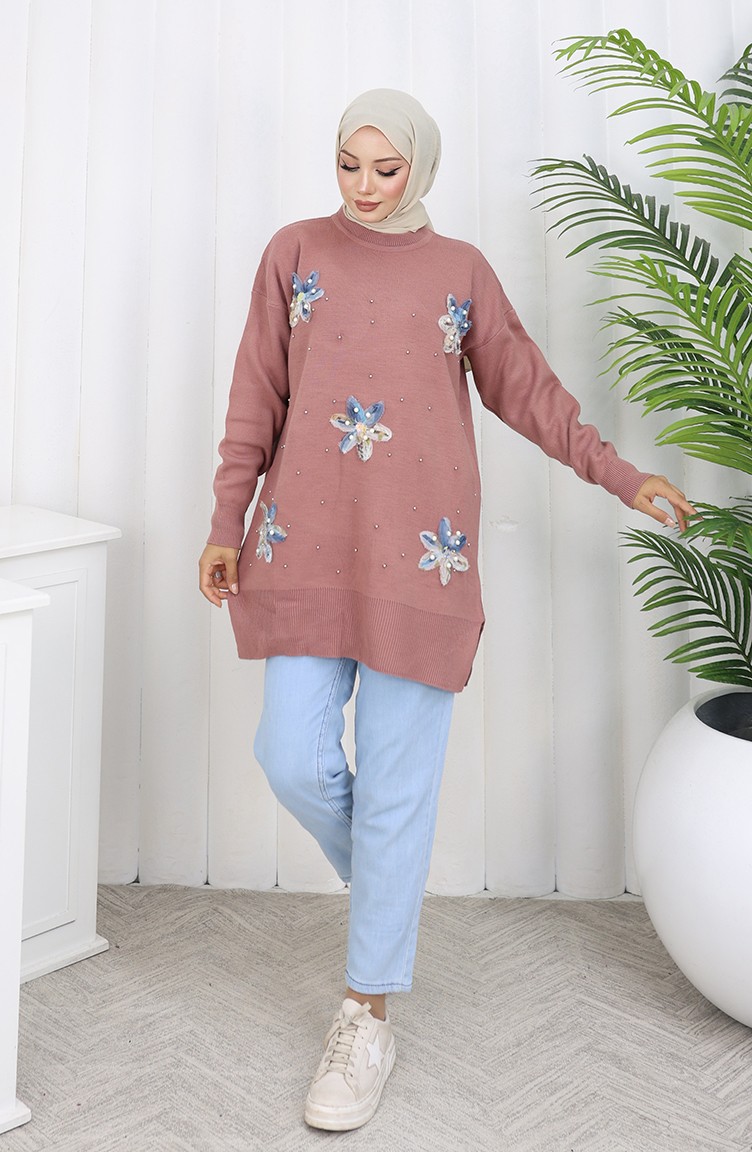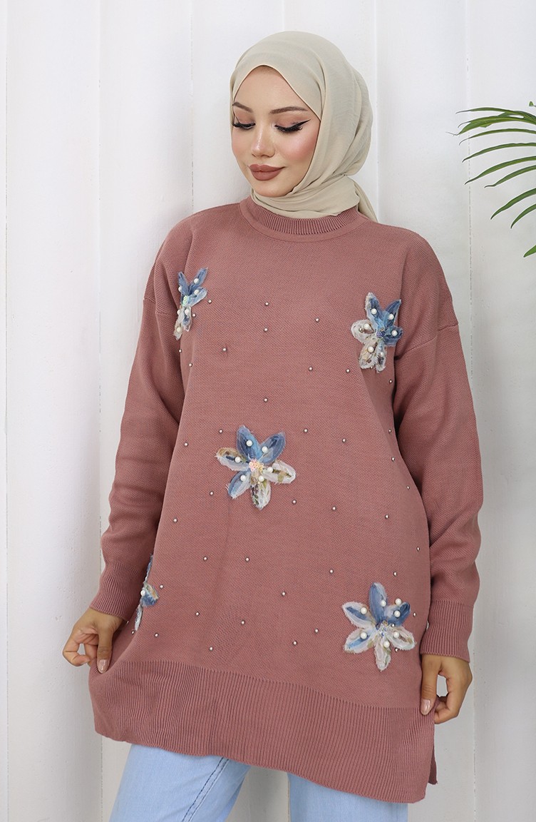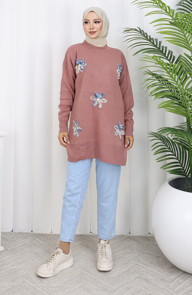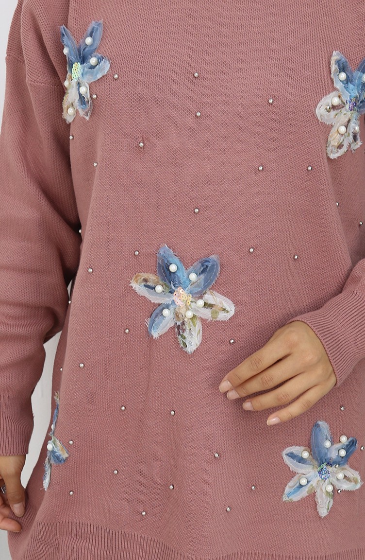 سترة محبوكة مزخرفة 3010-01 وردية باهتة 3010-01