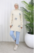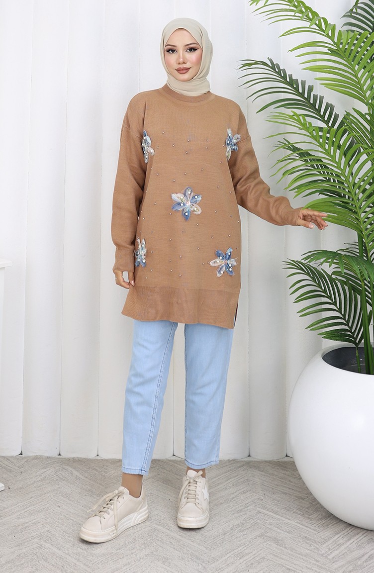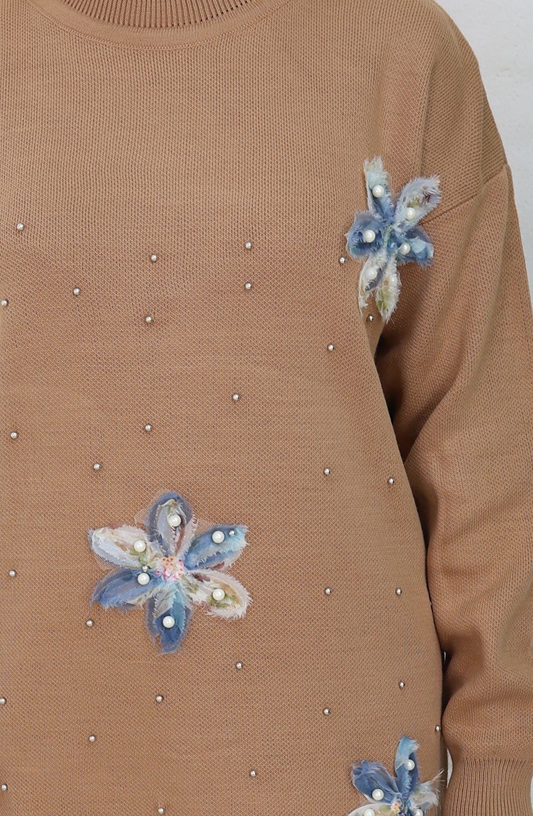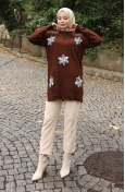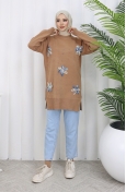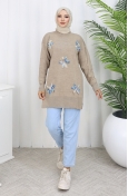 سترة محبوكة مزينة 3010-08 بلون القهوة والحليب 3010-08