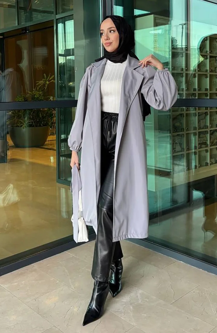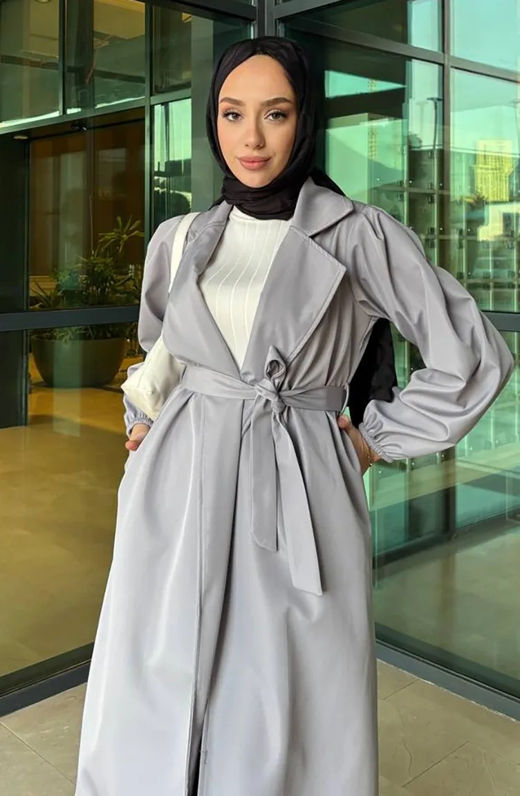 معطف واقٍ من المطر بتصميم حزام للخصر 4511-03 لون رمادي 4511-03