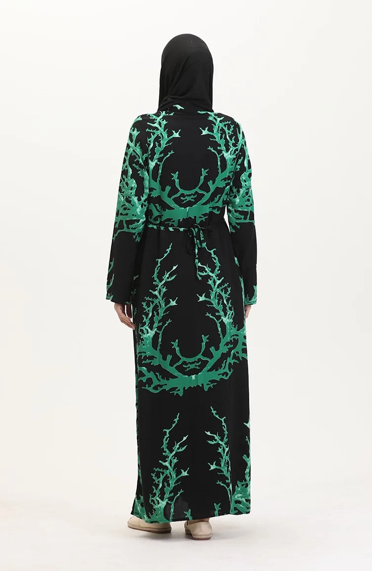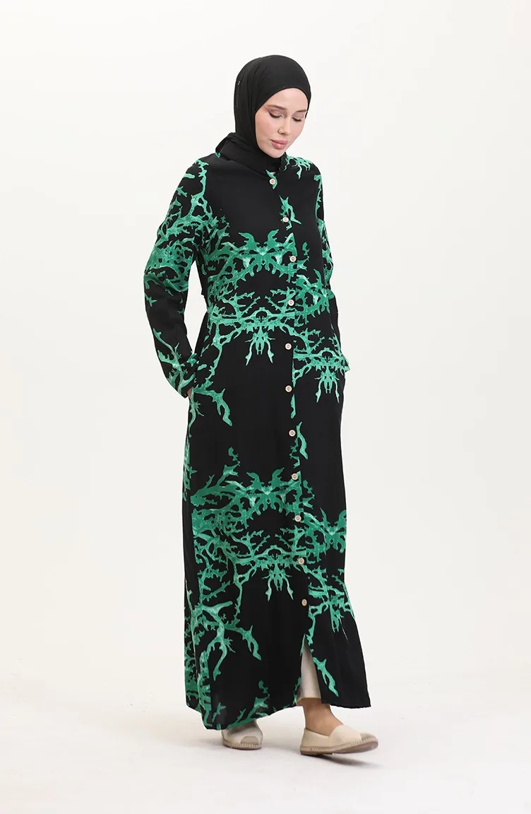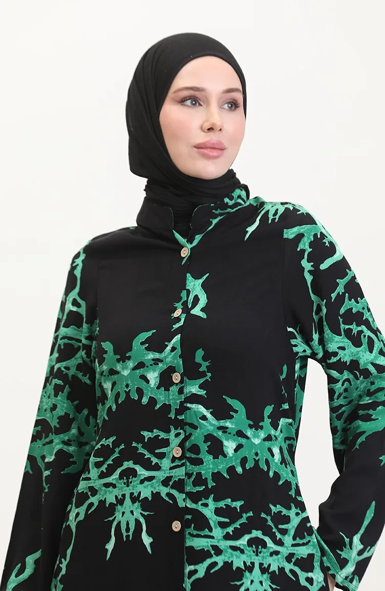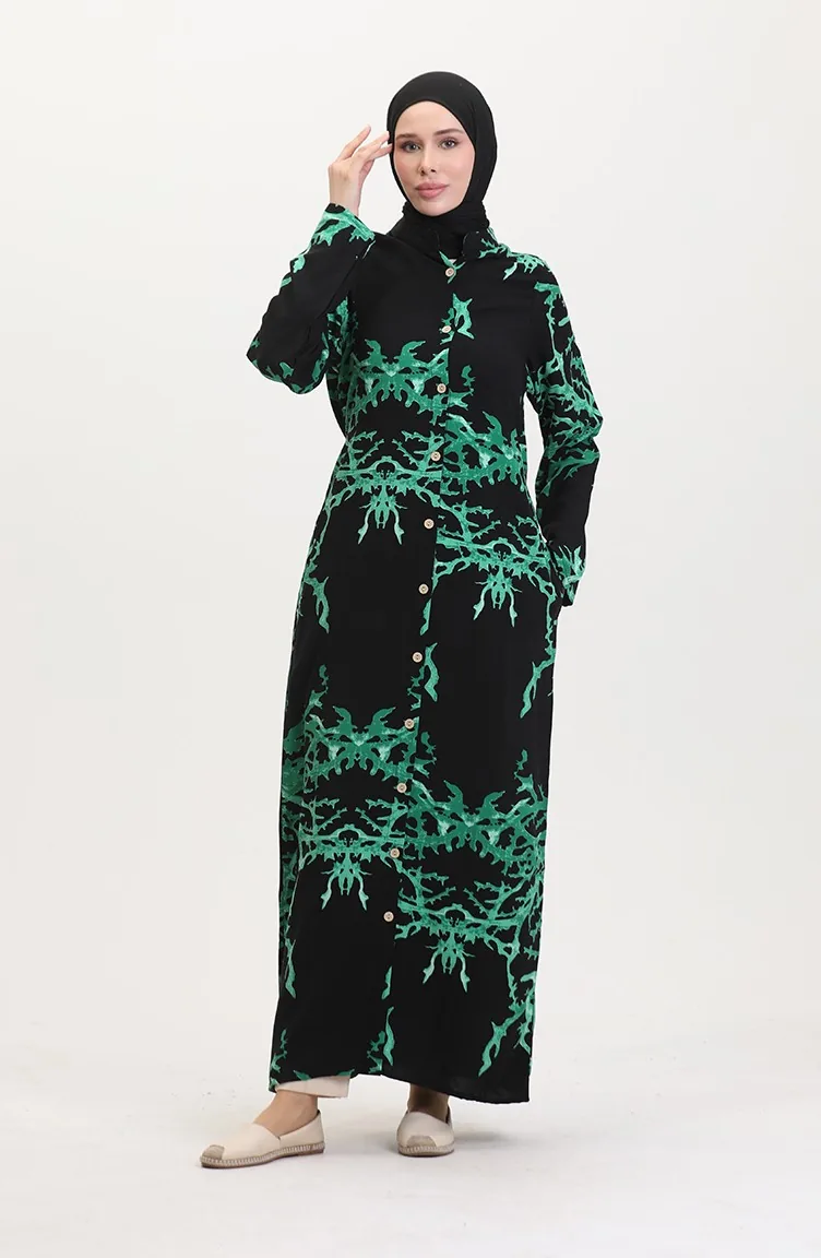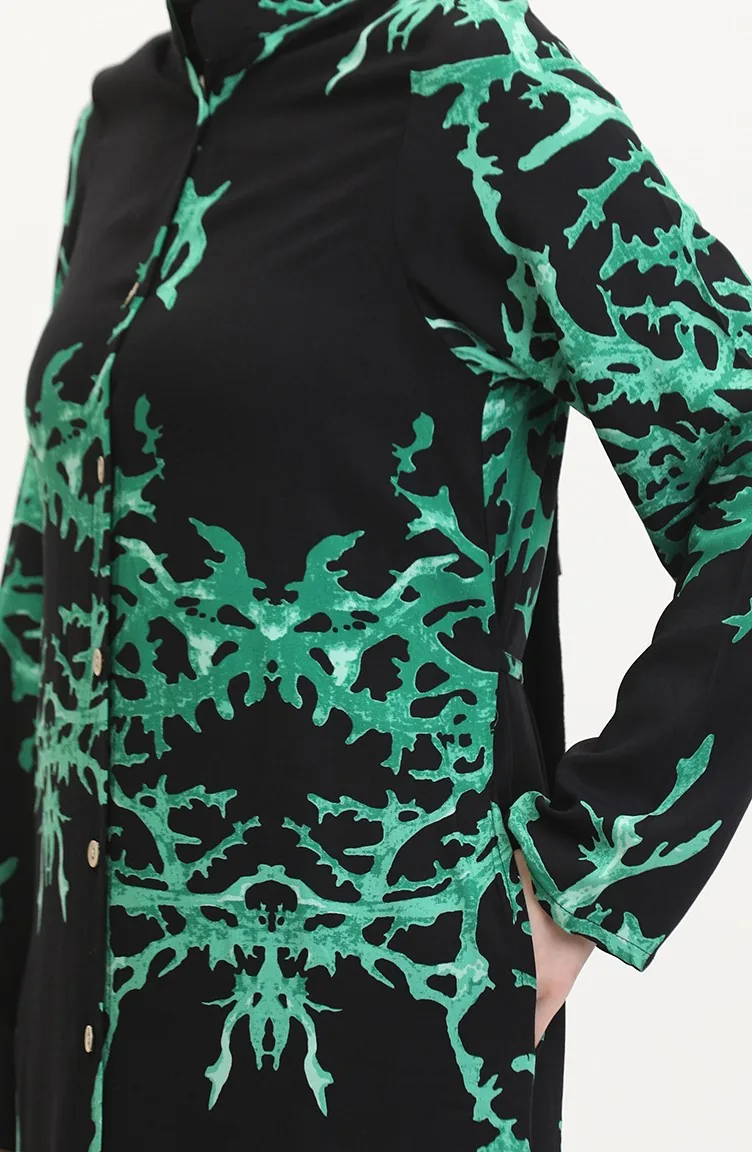 تونيك طويل منقوش بأزرار 2035-04 أسود أخضر 2035-04