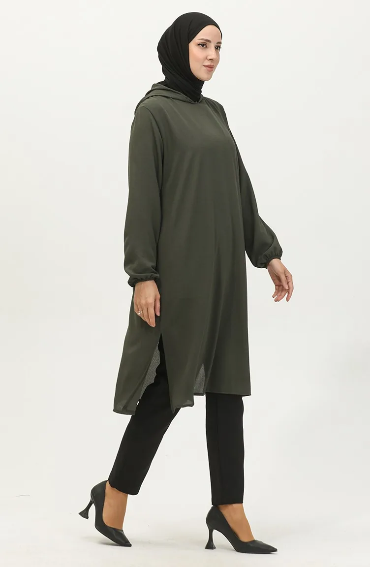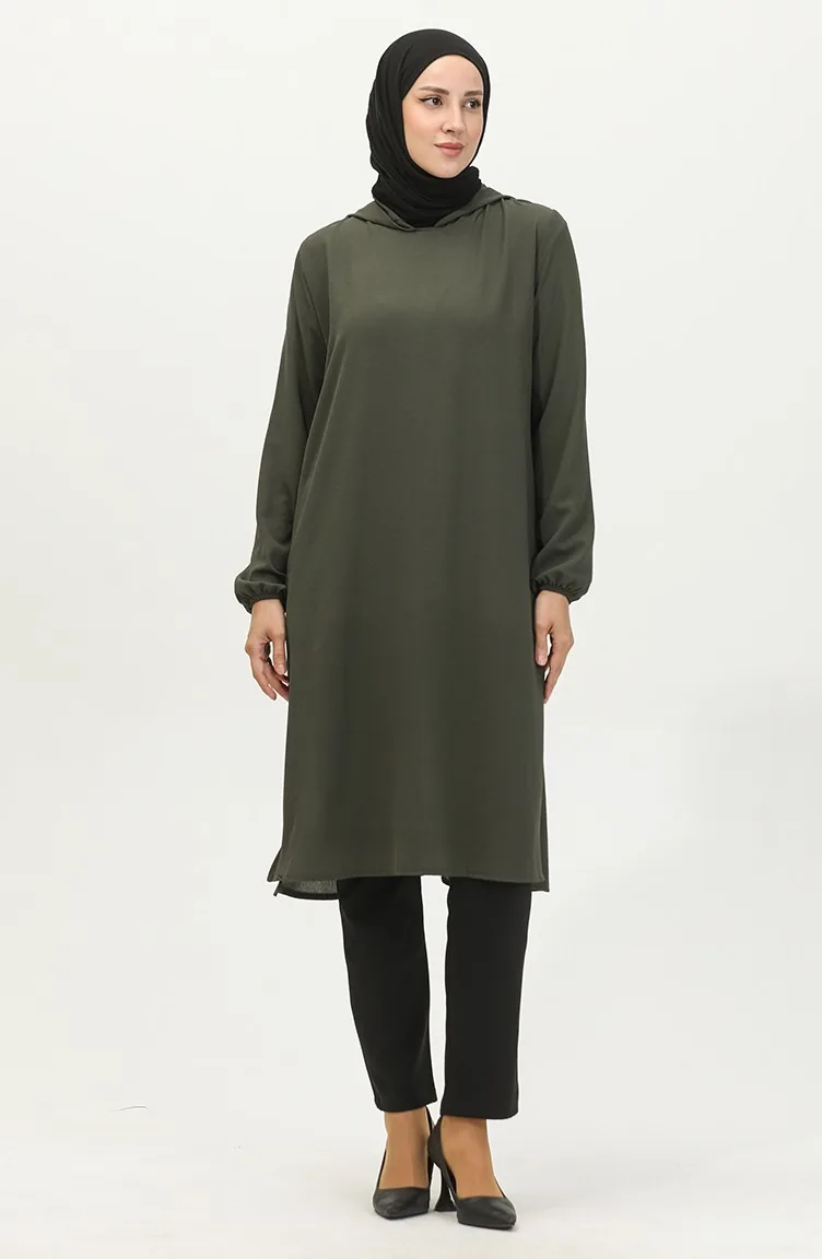 تونيك عربي بتصميم موصول بقبعة 1692-06 لون كاكي 1692-06