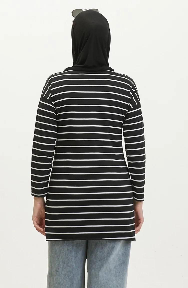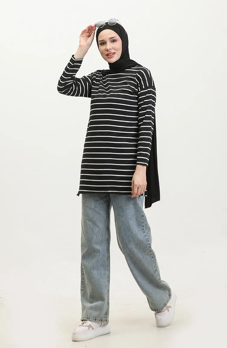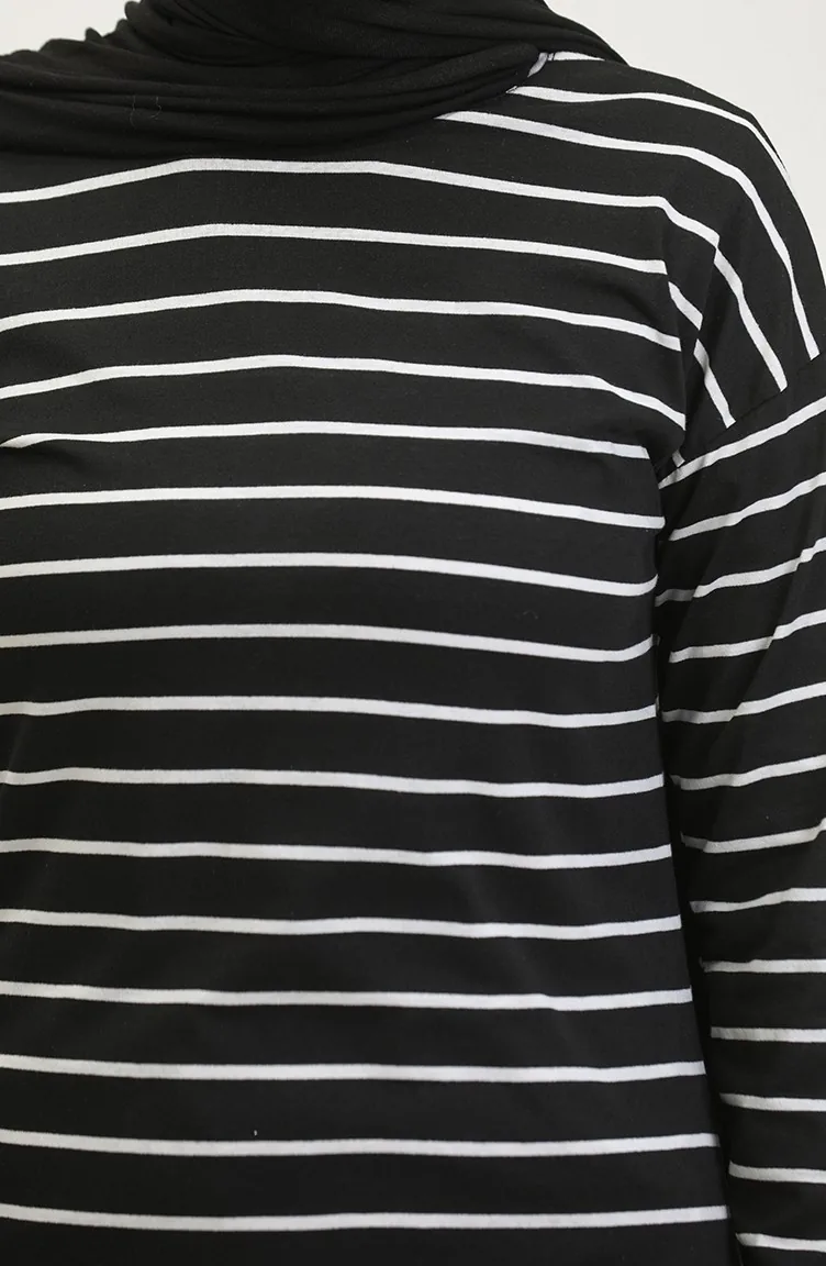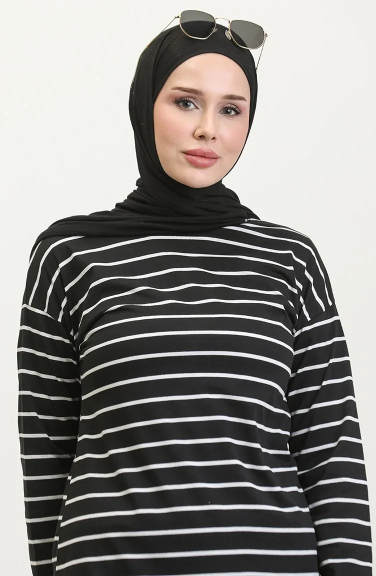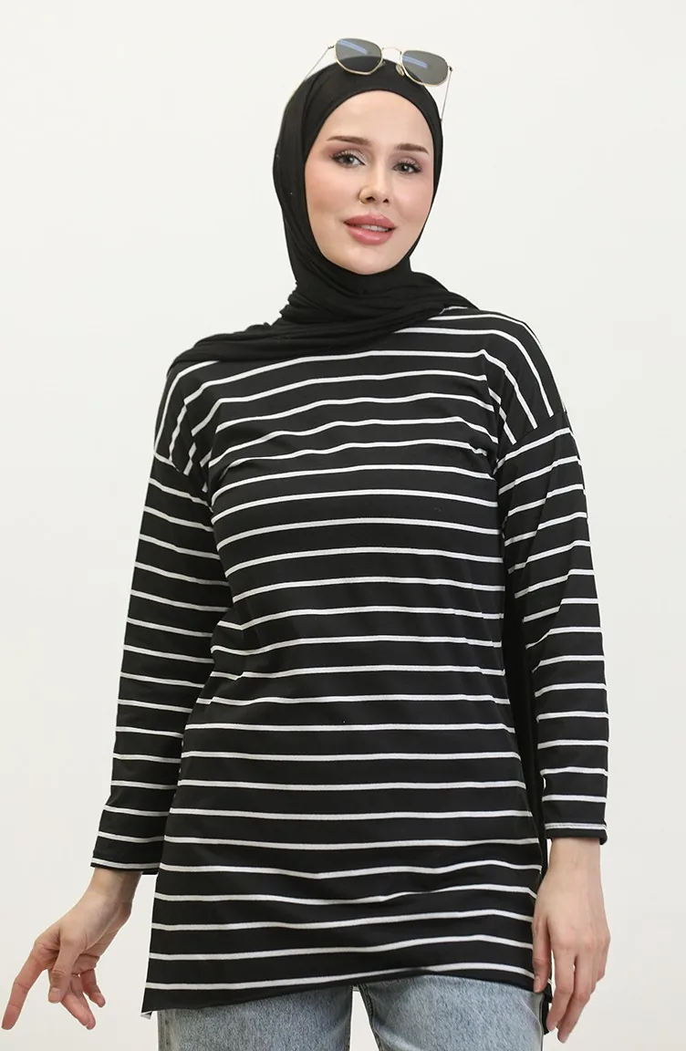 تونيك قطن ممشط بتصميم مُخطط 8705A-01 لون أسود 8705A-01