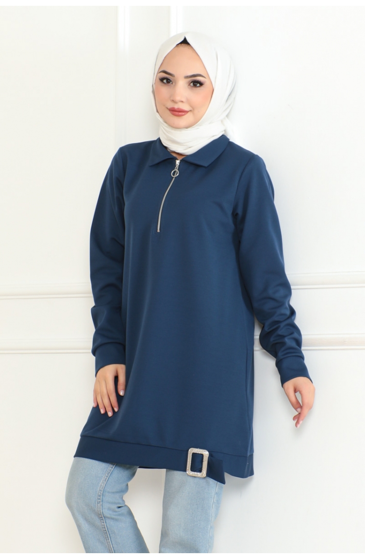 تونيك بتفاصيل مشبك وسحاب 602-05 لون نيلي 602-05