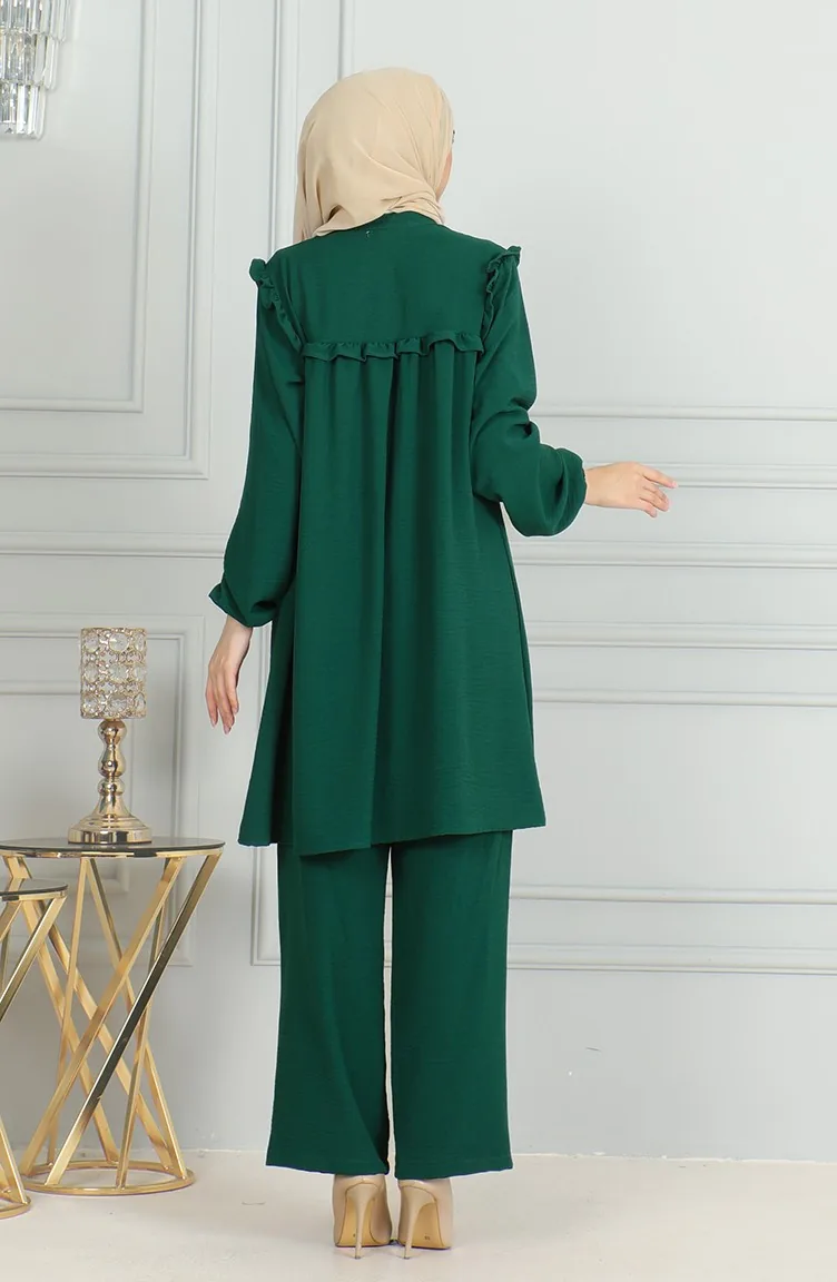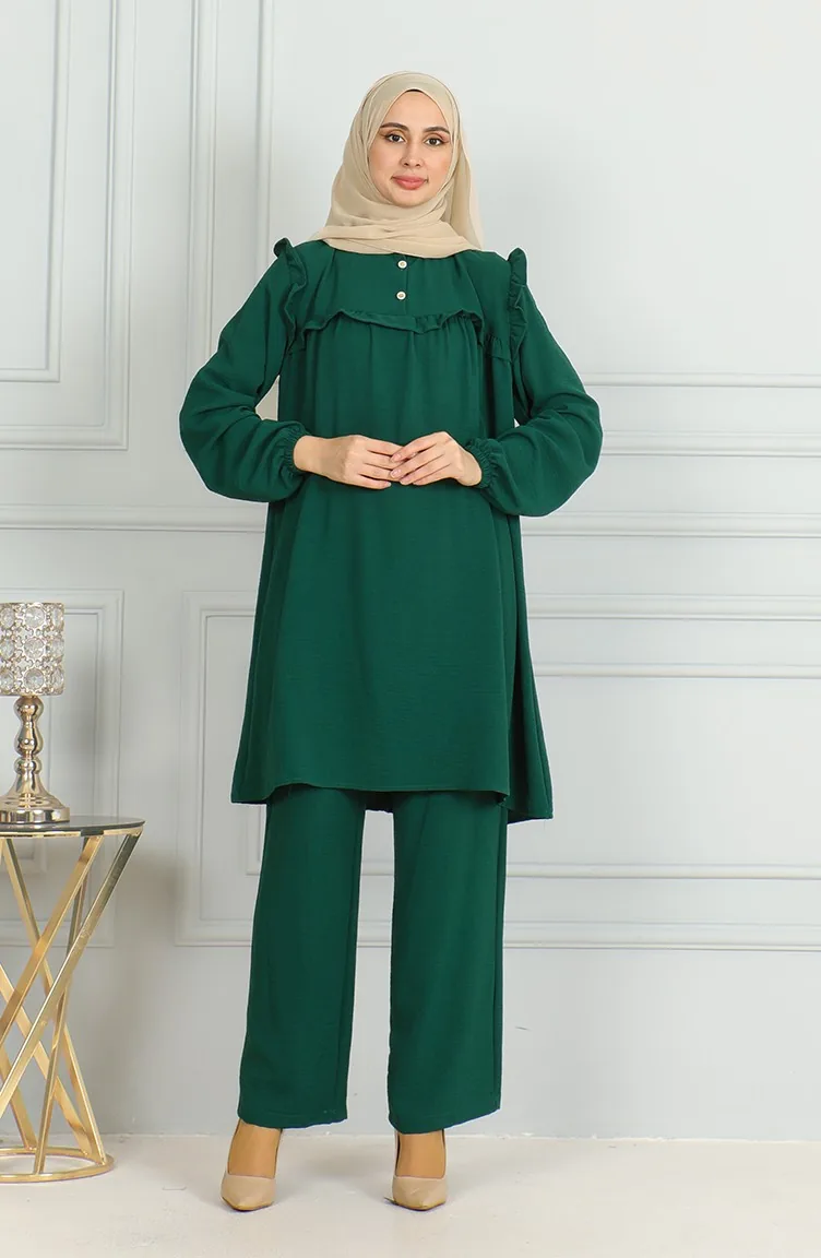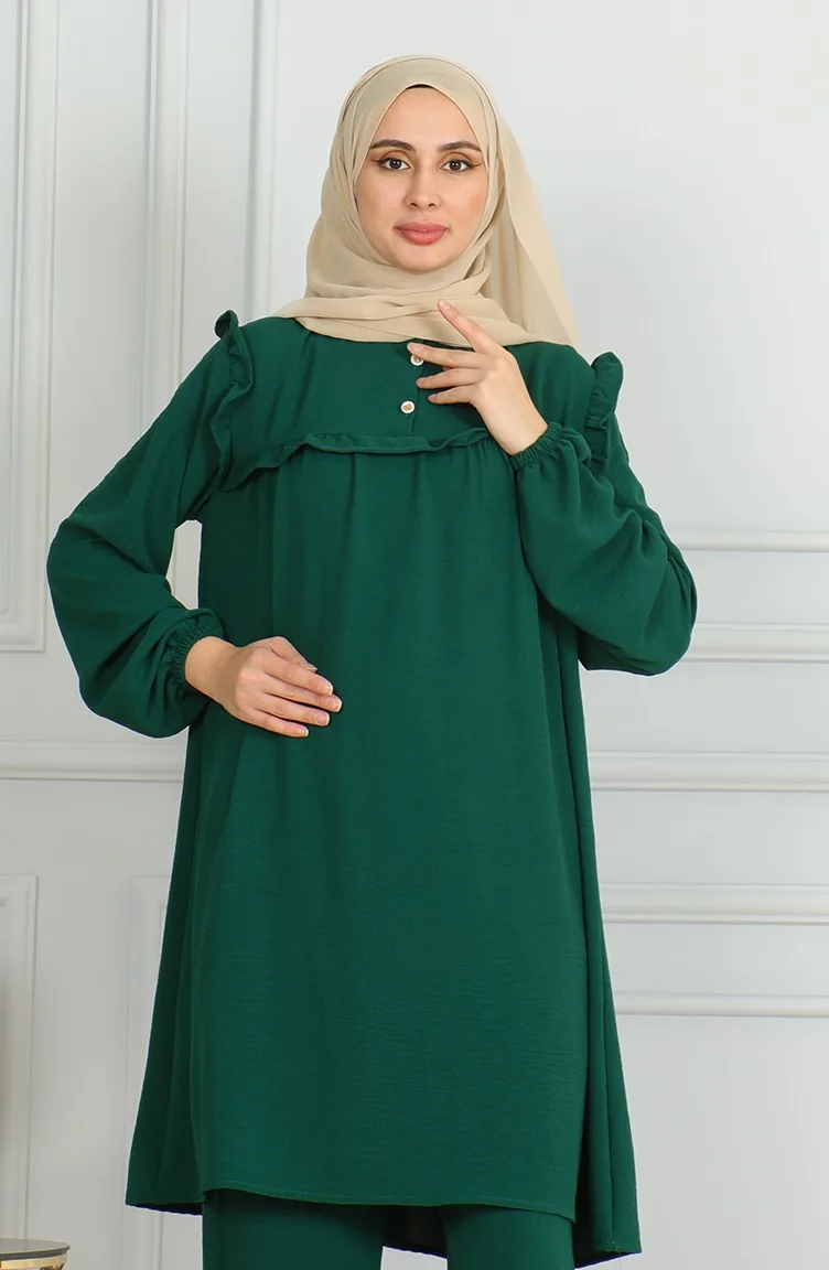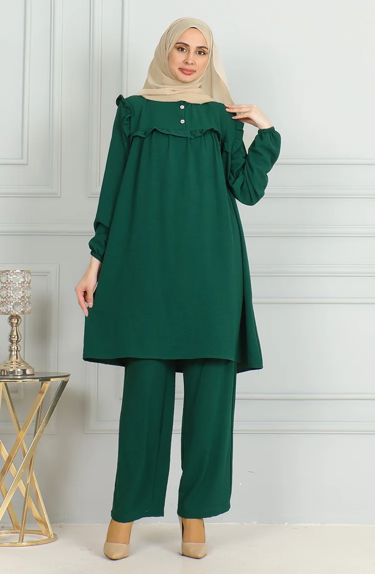 بدلة مزدوجة مكونة من تونيك وبنطال قماش ايروبين 1009-01 لون أخضر زمردي 1009-01