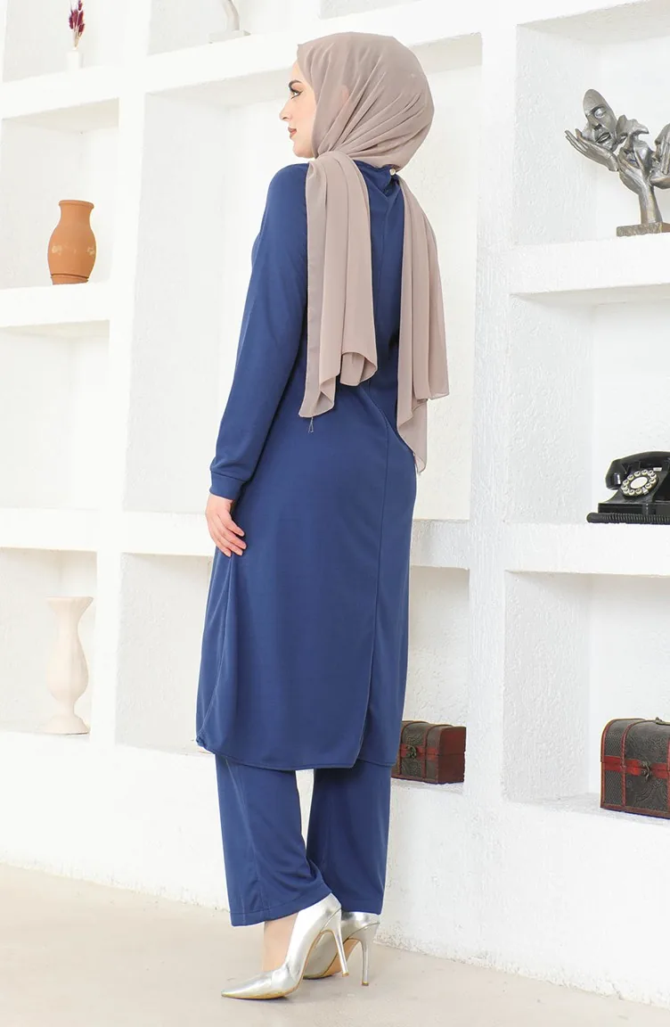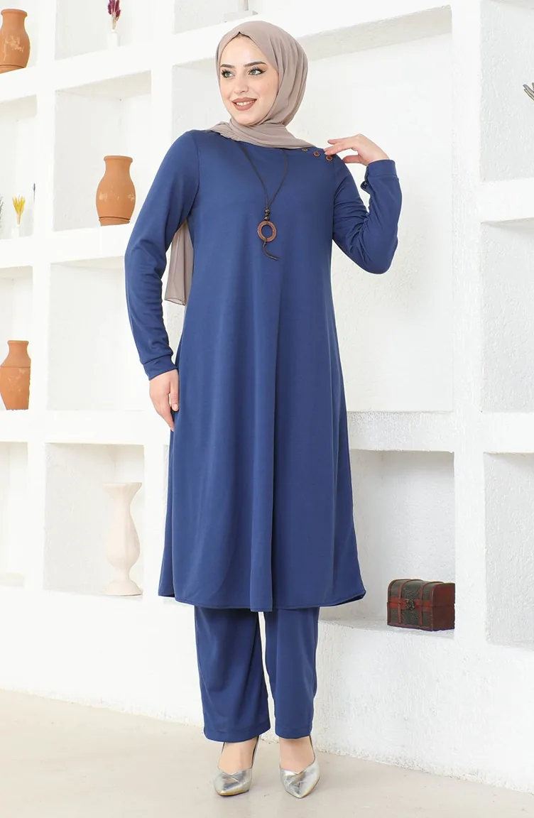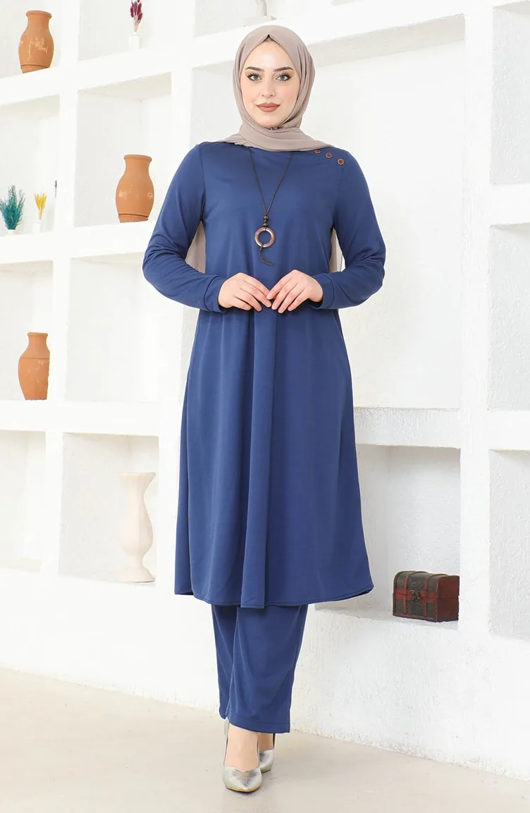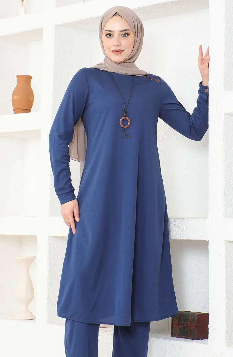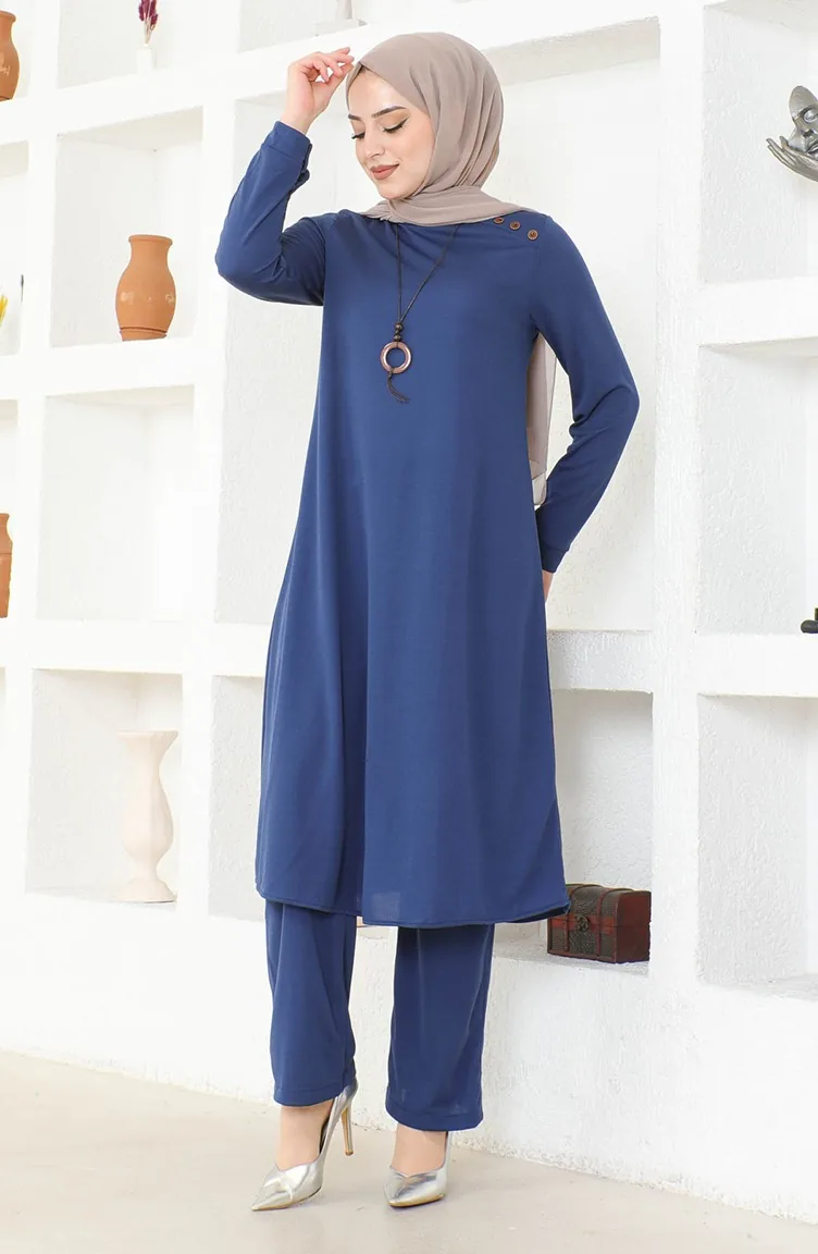 طقم ثنائي تونيك بنطلون بقلادة 0580-03 انديجو 0580-03