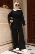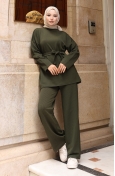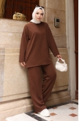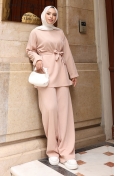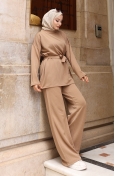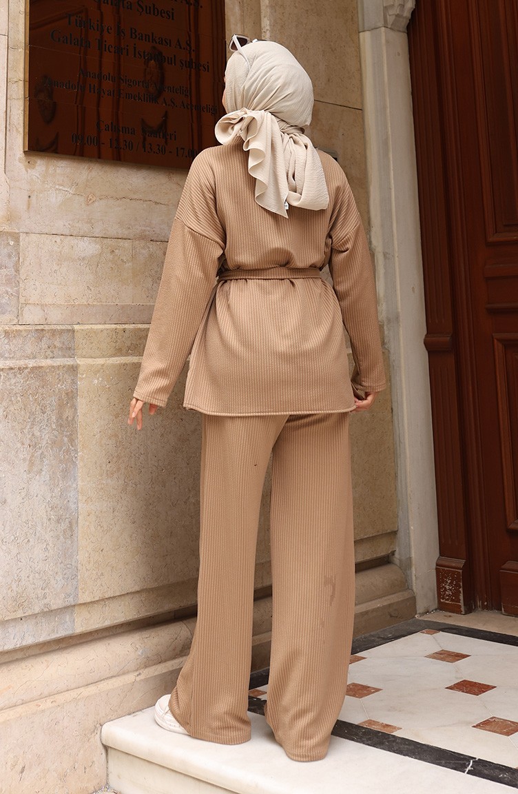 طقم بنطلون حجاب برباط مضلع 2172-04 لون قهوة حليبية 2172-04