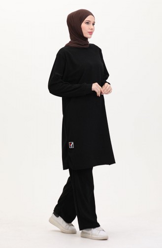 بدلة تونيك وبنطلون من قطعتين 0568-02 أسود 0568-02