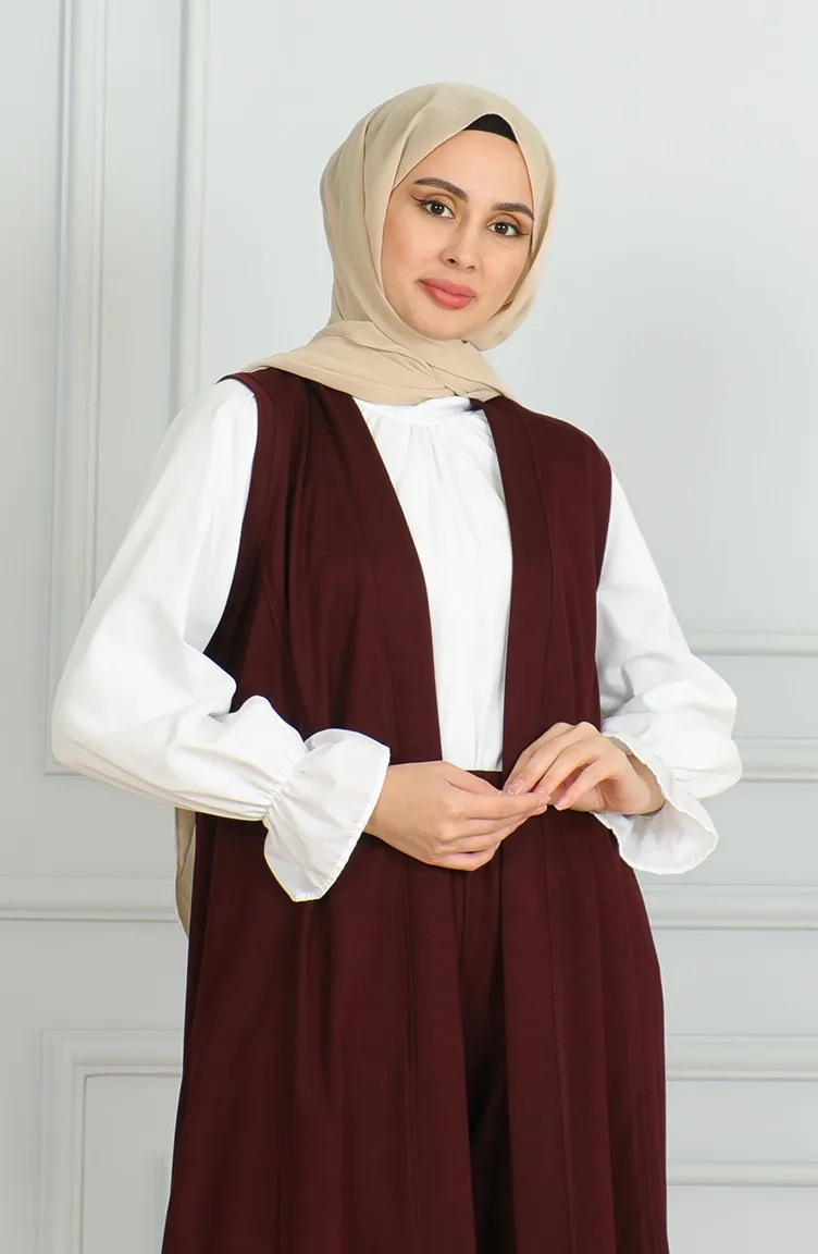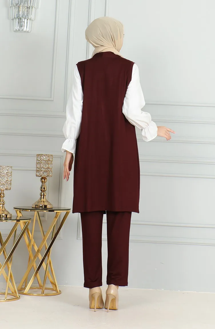 طقم ثنائي سترة بدون أكمام بنطلون 20046-05 برقوقي 20046-05