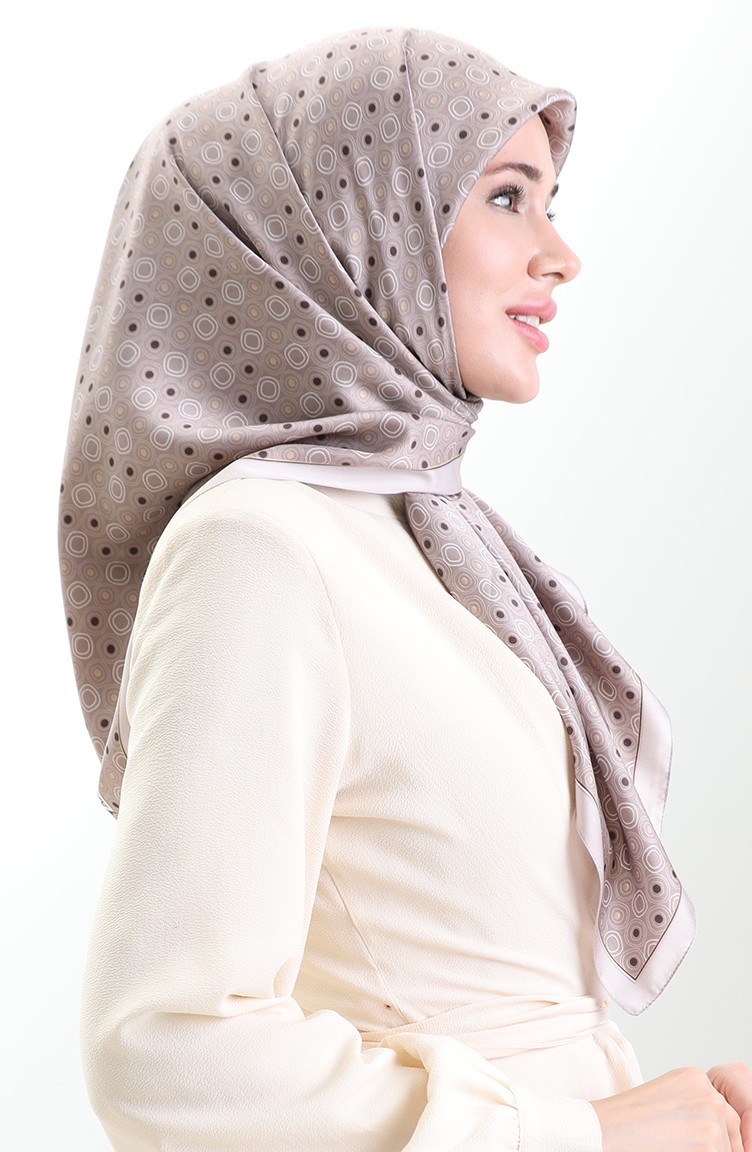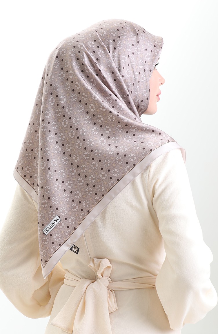 وشاح كاراكا من الحرير الصناعي بنقوش هندسية 82020-02 بني فاتح 82020-02