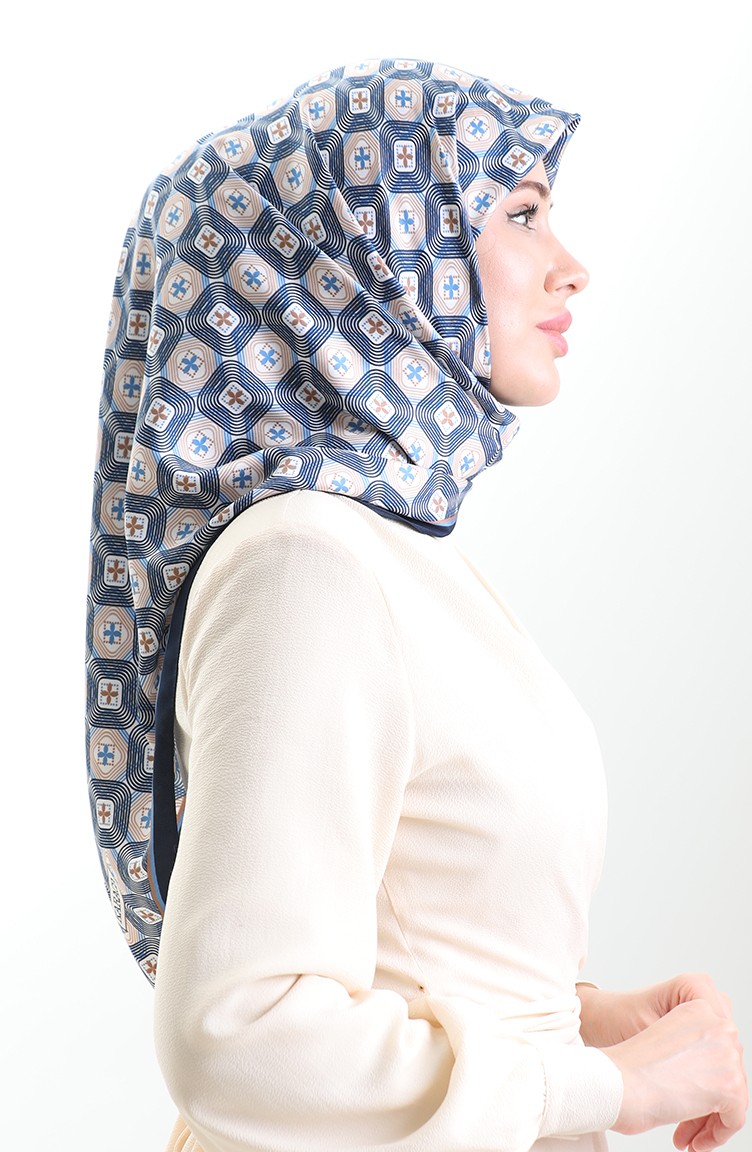 وشاح كاراكا من الرايون بنقوش هندسية 82021-07 أزرق داكن نيلي 82021-07