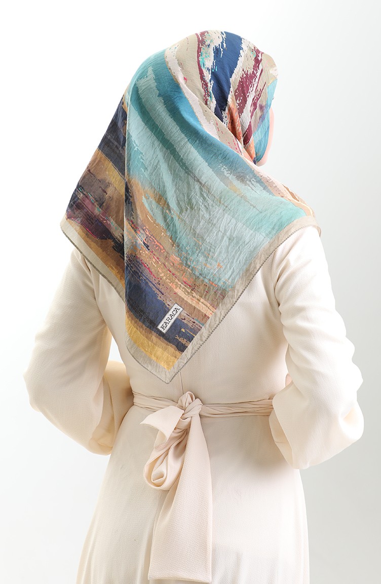 وشاح كاراكا المنقوش من الألياف الطبيعية 82019-04 من رغوة العسل باللون الأزرق الداكن 82019-04
