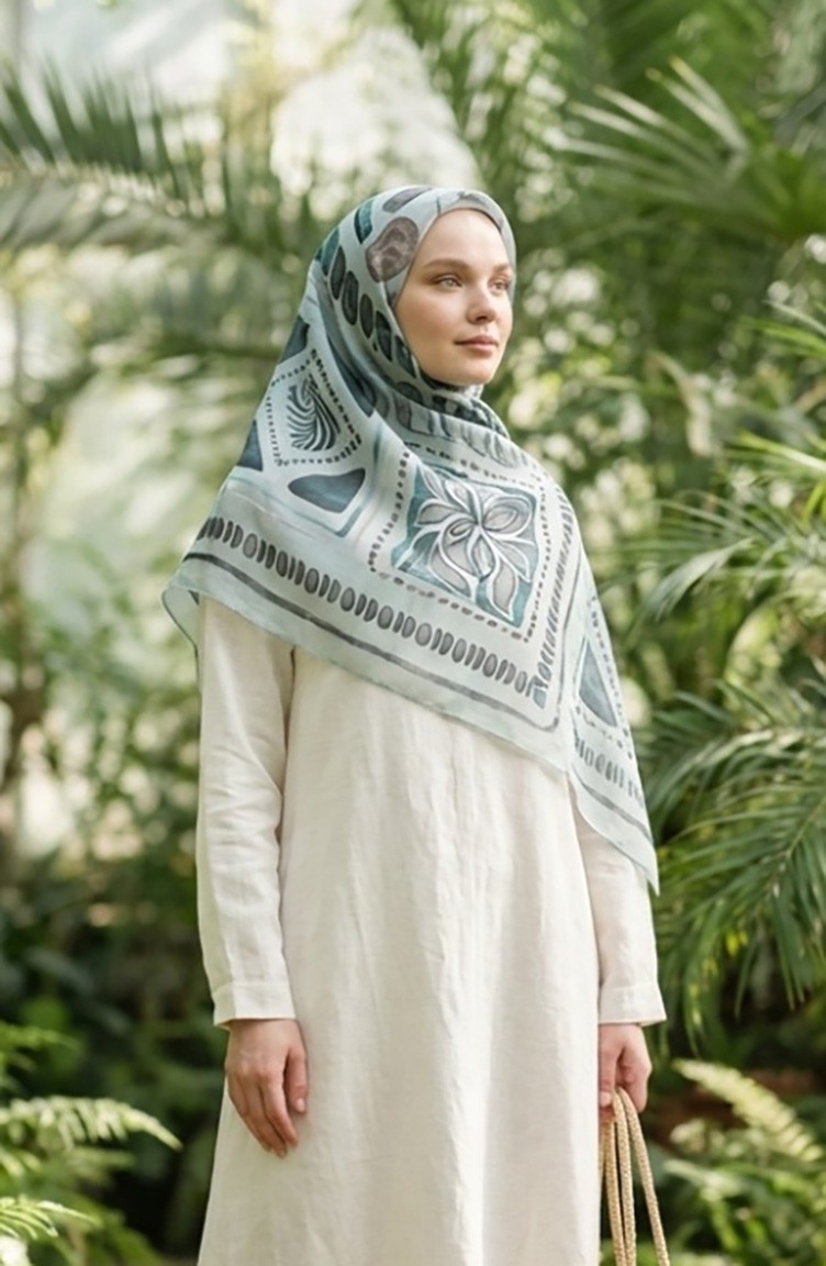 وشاح بنقشة كهرمانية 70326-12 أخضر فاتح 70326-12