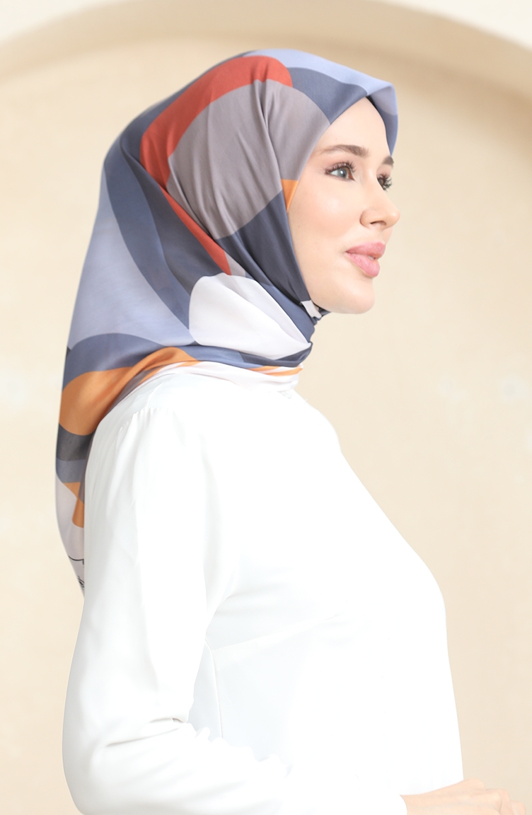 إيشارب سوفت منقوش 70253-02 خردلي رمادي 70253-02