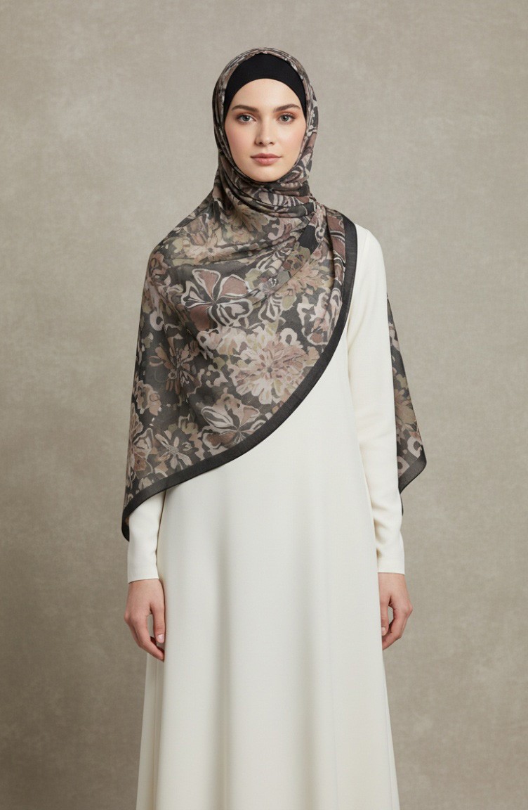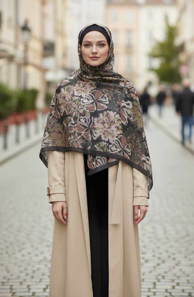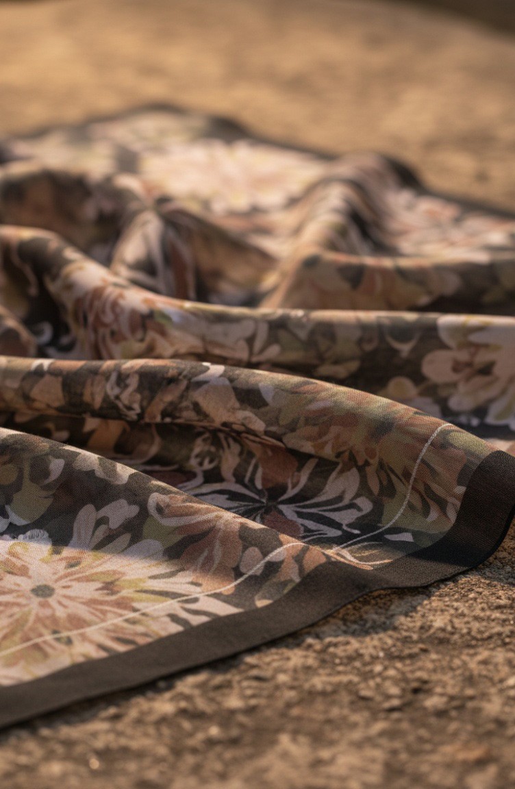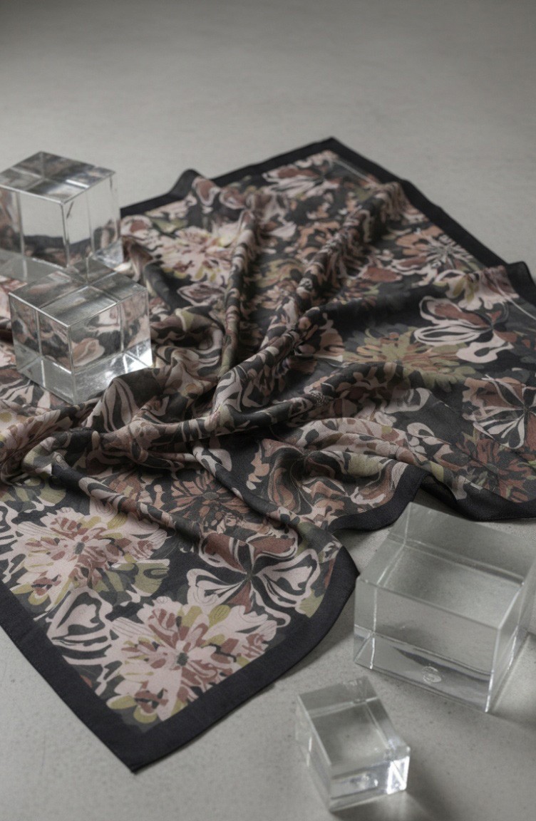 وشاح كهرماني بنقشة زهور 70357-01 أسود 70357-01