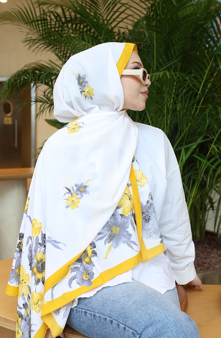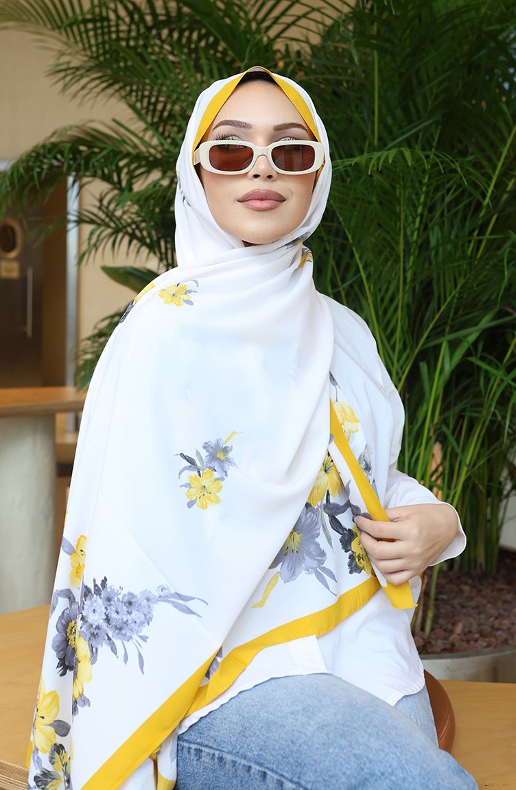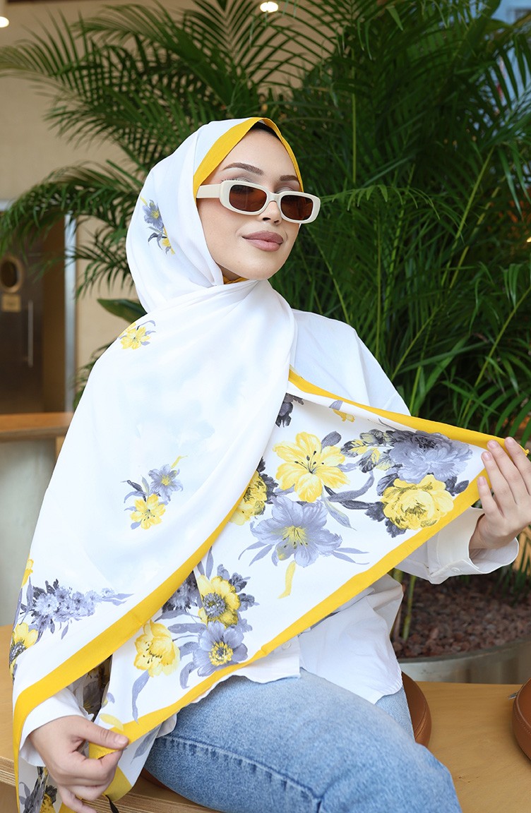 شال كابري منقوش بالزهور 70346-04 أصفر رمادي 70346-04