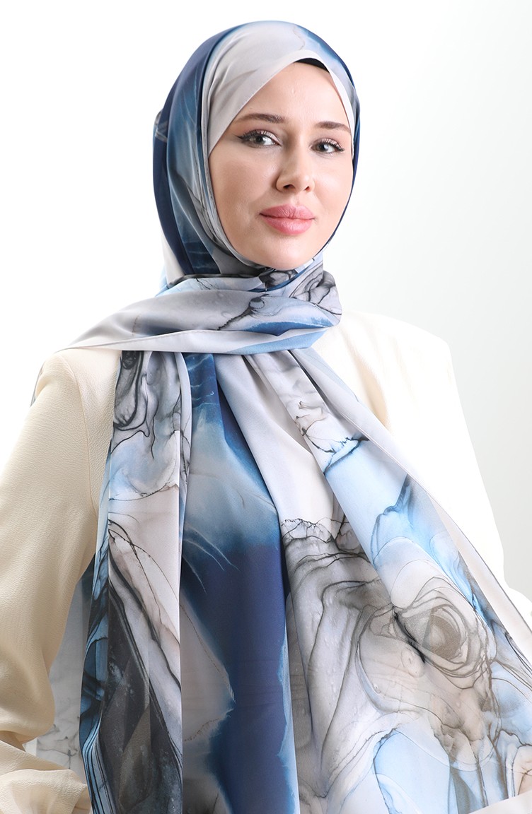 شال حرير فرنسي من هانزاد 70328-01 نيلي فاتح من المنك 70328-01