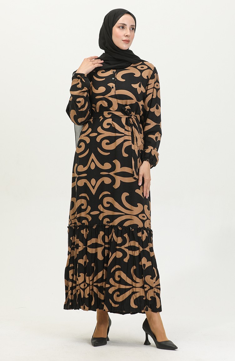 فستان فيسكوز منقوش مقاس كبير 4588E-01 أسود فيزون 4588E-01