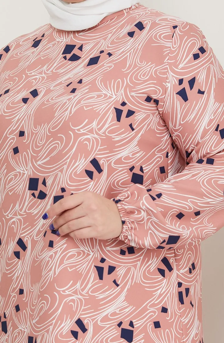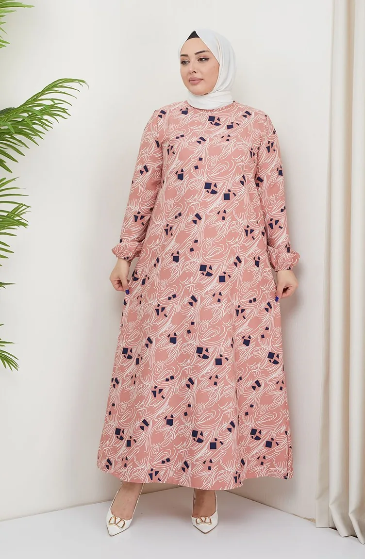 فستان منقوش مقاس كبير 0710-02 بودرا 0710-02