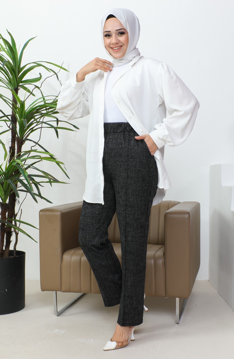 بنطلون جاكار نسائي 1037D-01 أسود 1037D-01