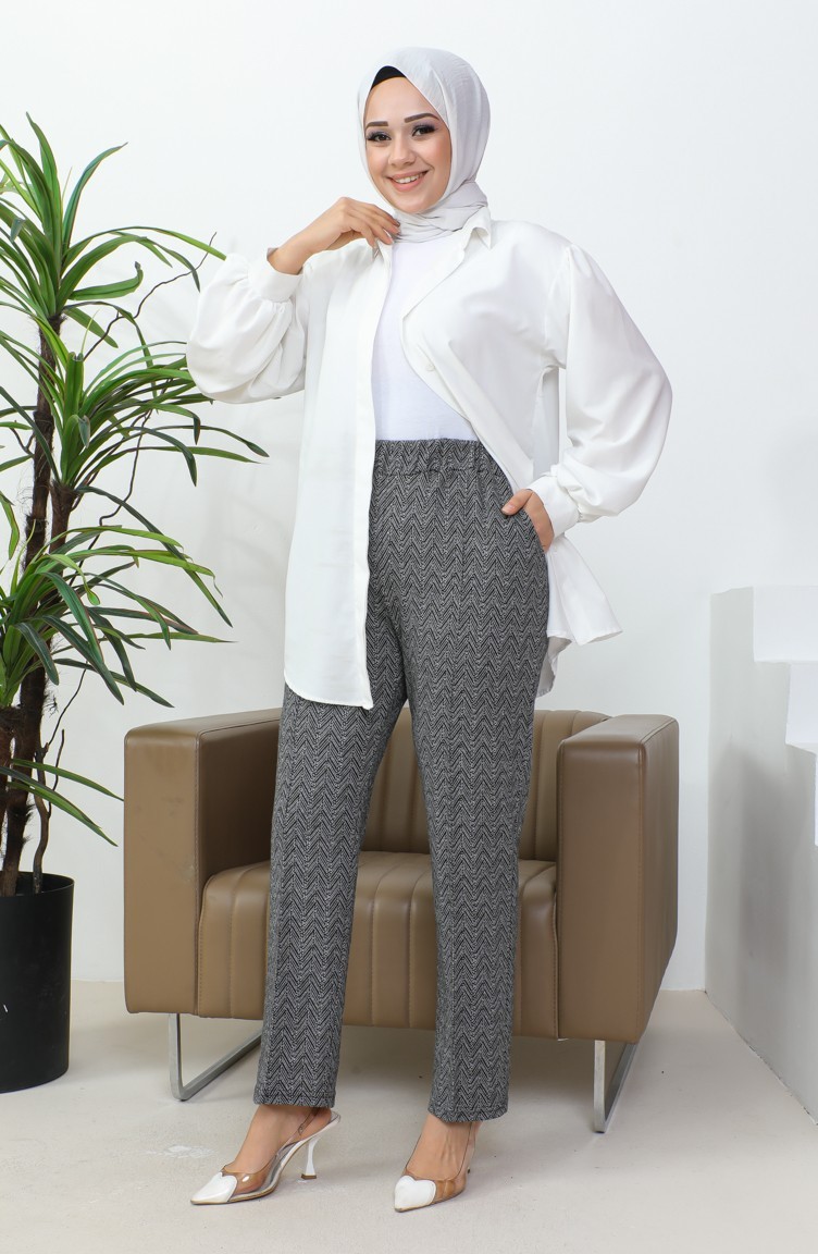 بنطلون نسائي جاكار مطرز 1037E-01 أسود 1037E-01