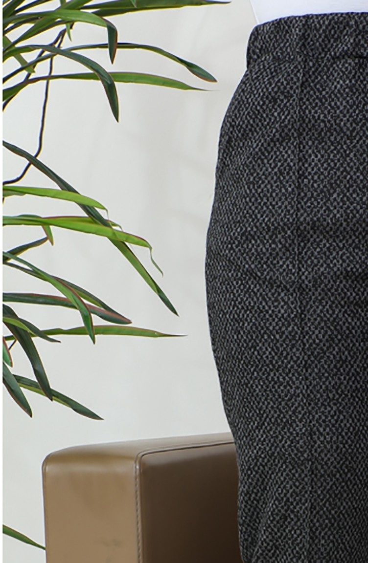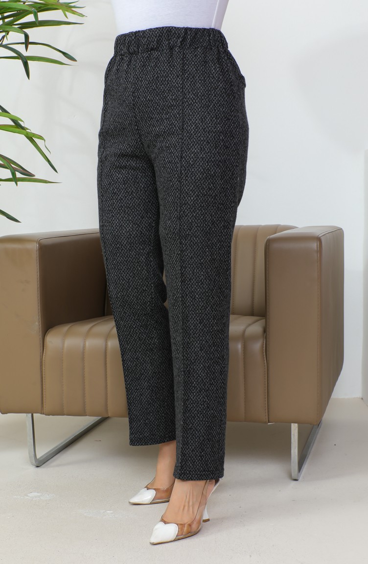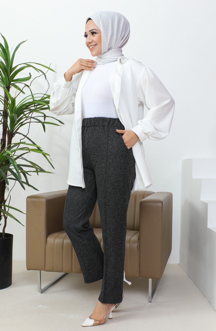 بنطلون جاكار نسائي بحاشية مضلعة 1037-01 أسود 1037-01