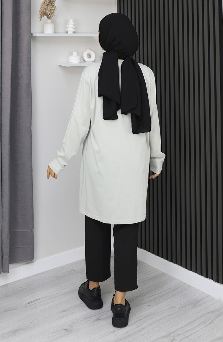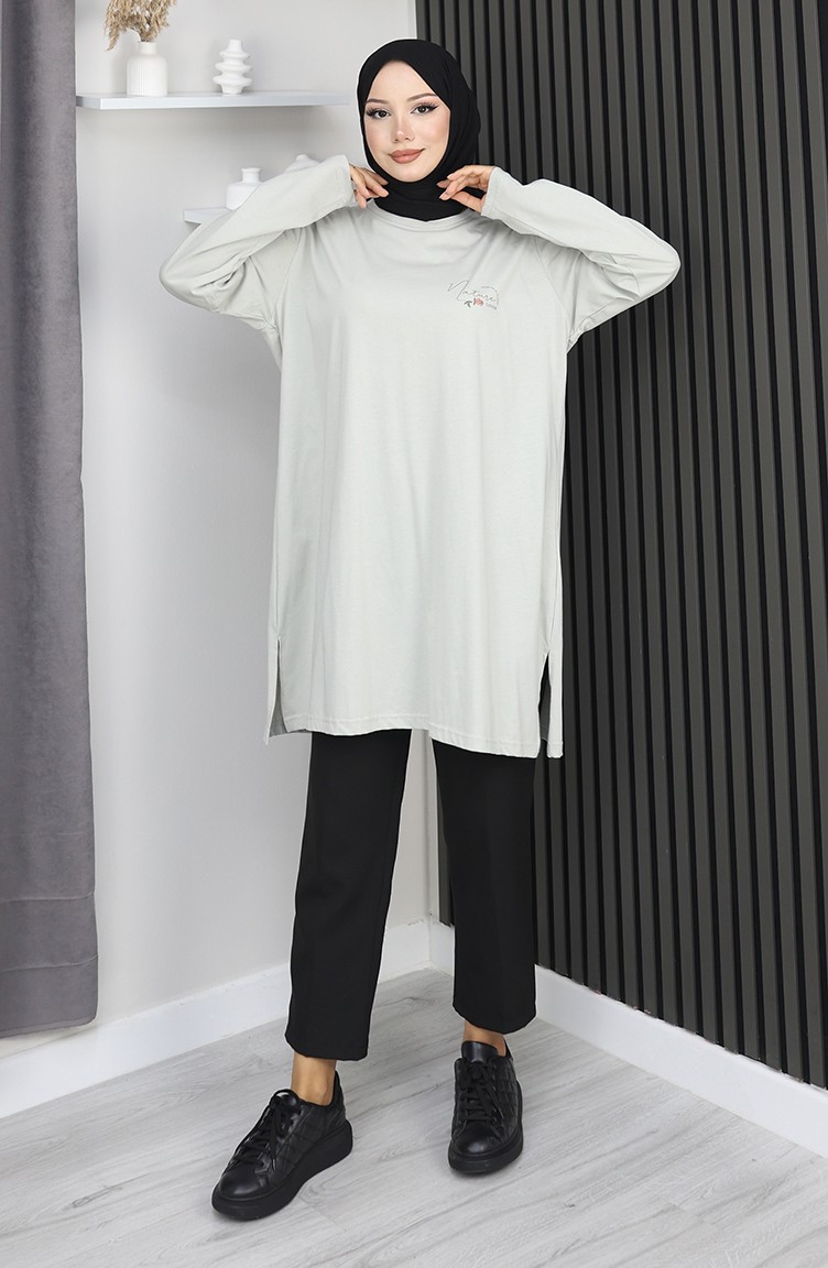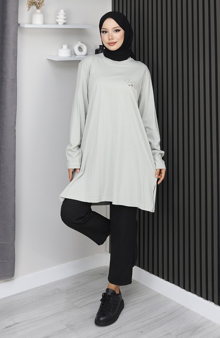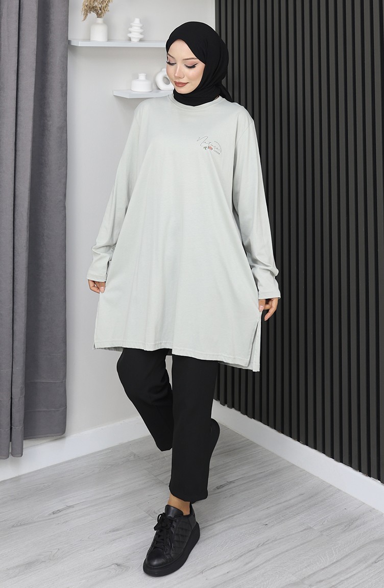 تونيك قطني ممشط مطبوع رقميًا مقاس كبير 9134B-01 حجري 9134B-01