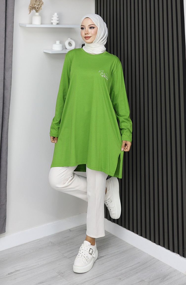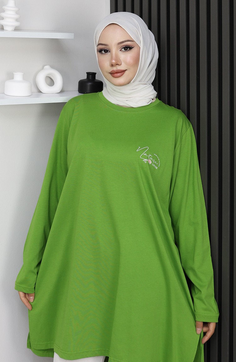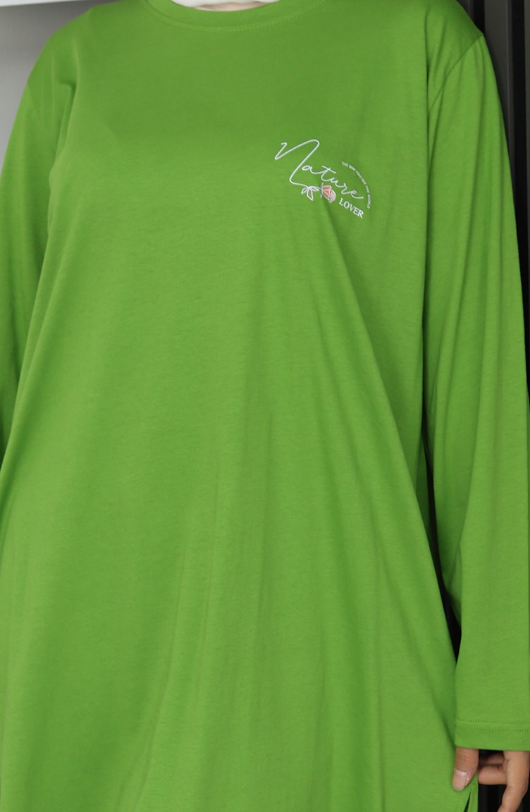 تونيك قطني ممشط مطبوع رقميًا مقاس كبير 9134B-02 أخضر 9134B-02