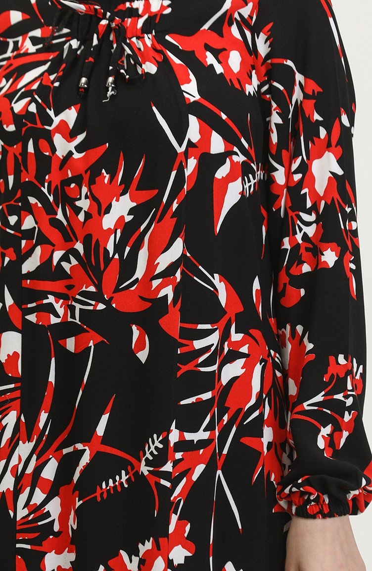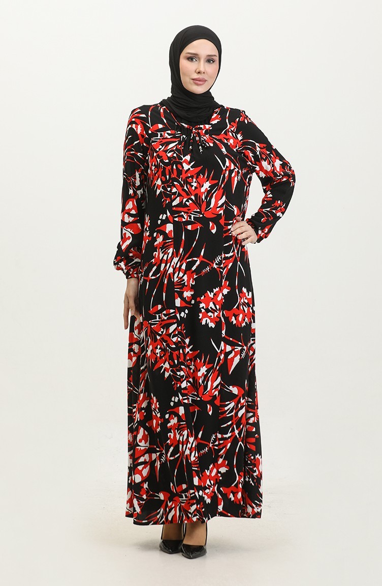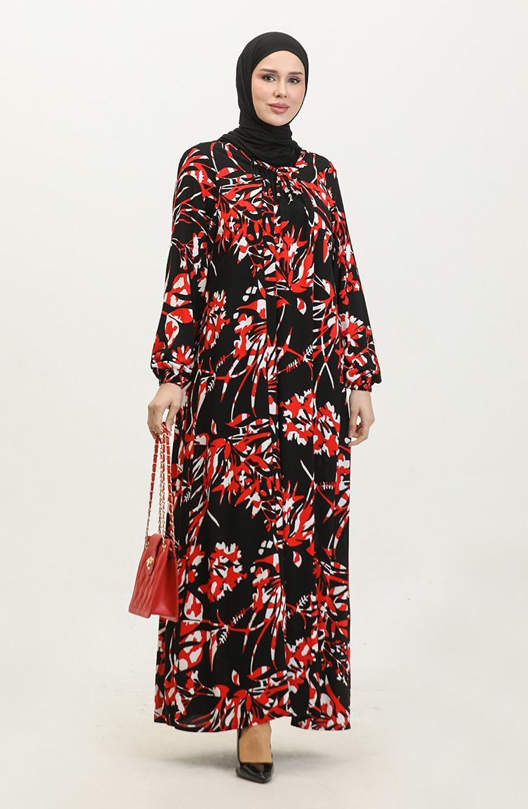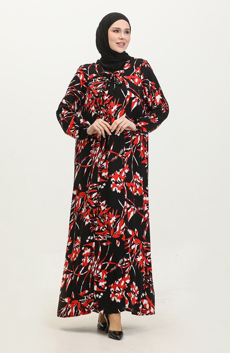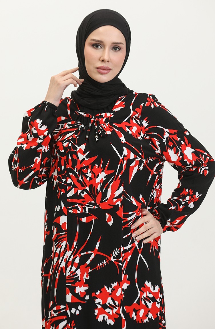 فستان فيسكوز منقوش مقاس كبير 44852L-01 أسود وأحمر 44852L-01