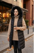 سترة منتفخة بغطاء رأس وسحاب 0169A-01 كاكي 0169A-1