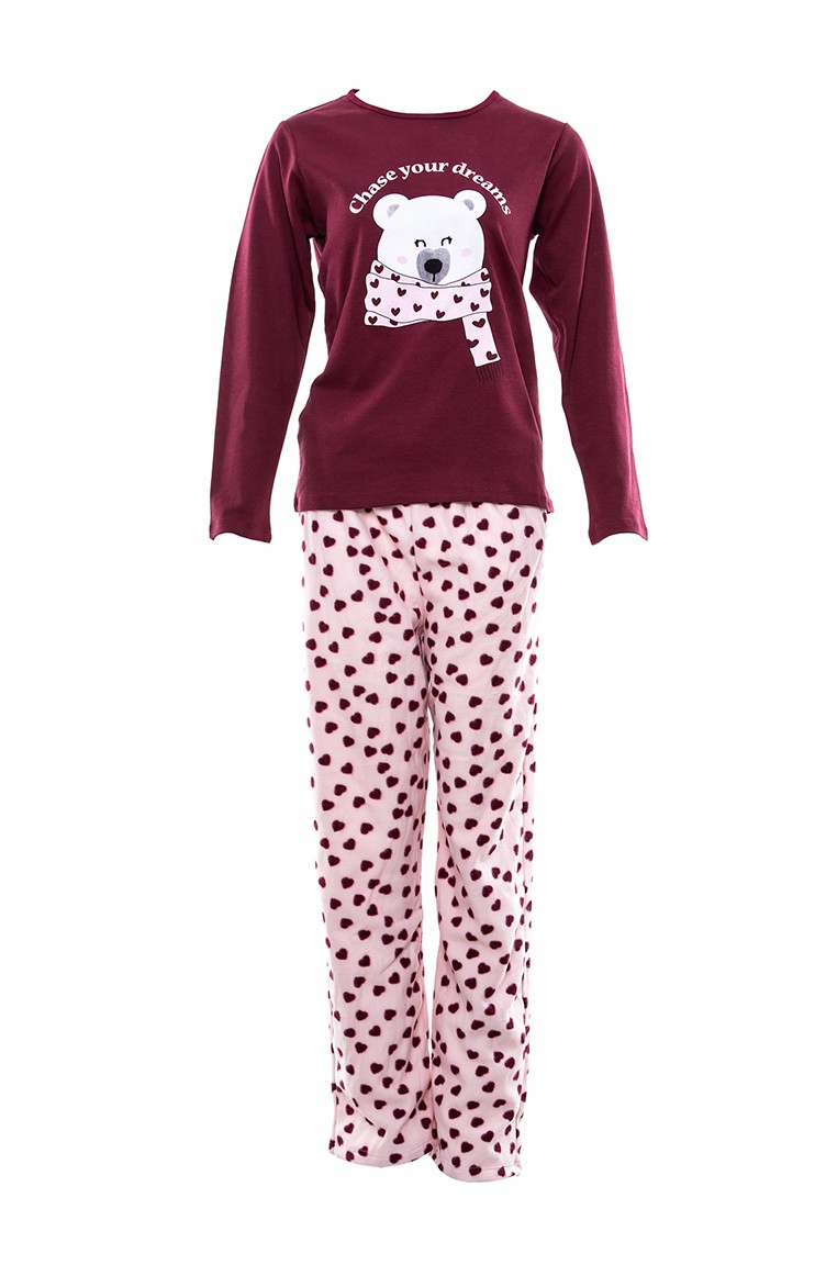 بيجامة نسائية من قطعتين بتصميم مُطبع MLB1046-01 لون كرزي 1046-01