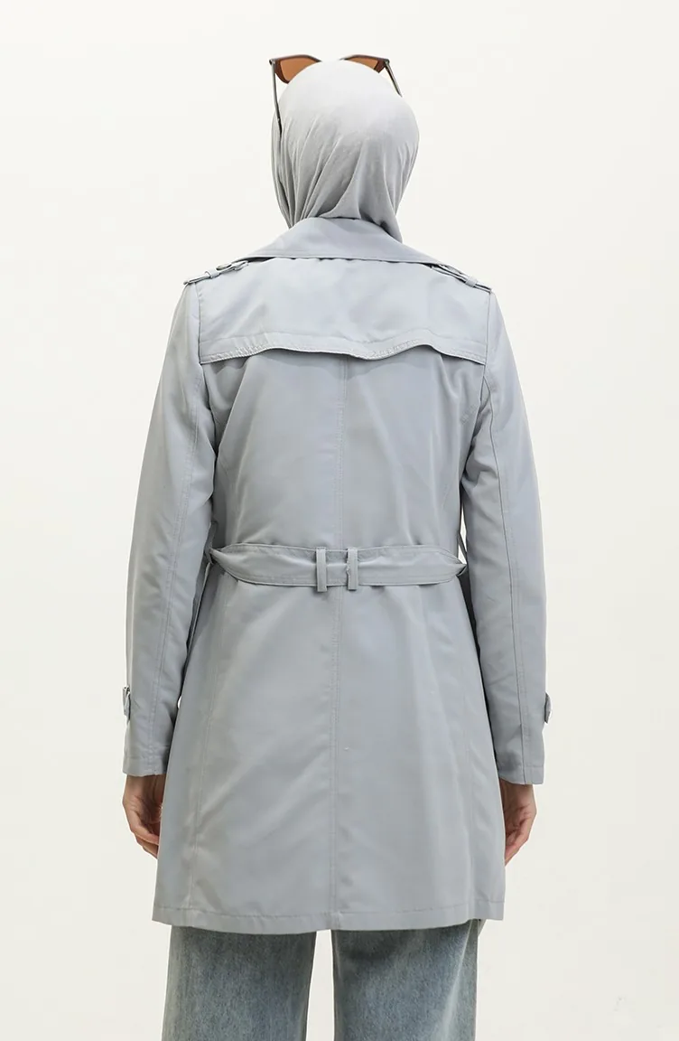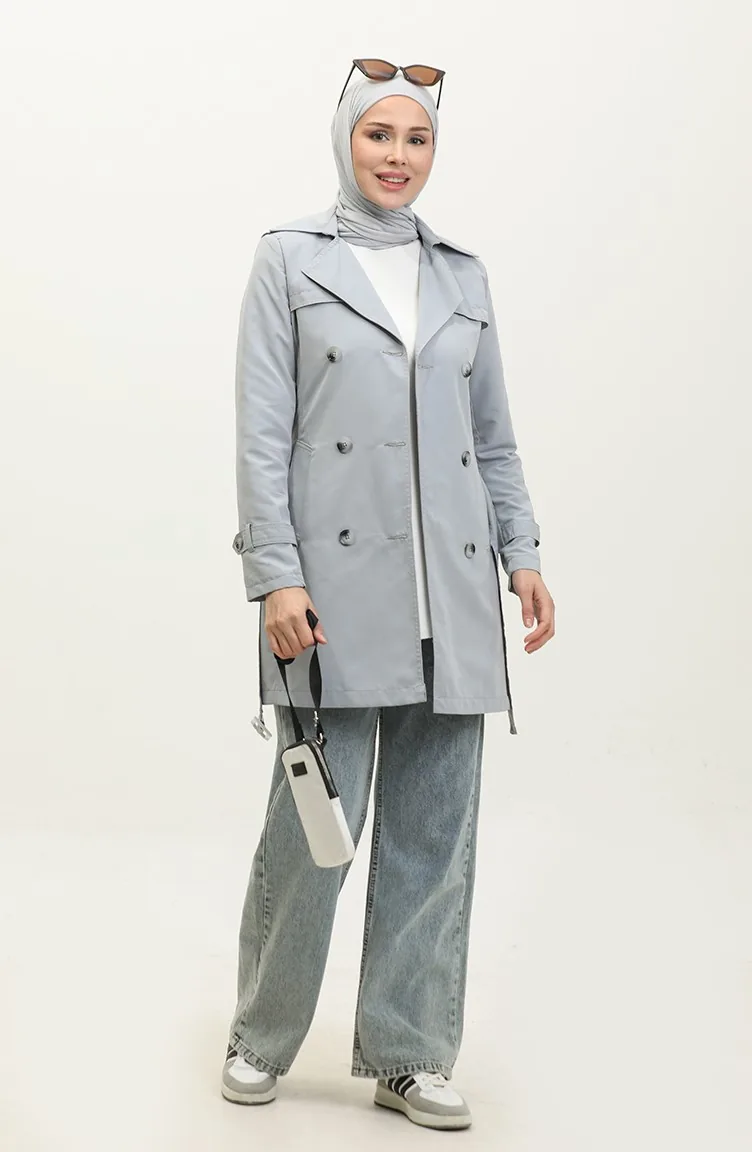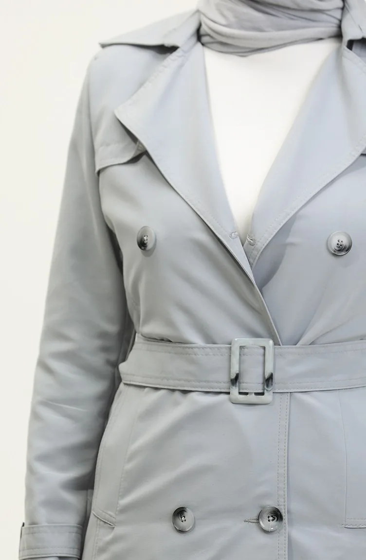 معطف نسائي صيفي قصير من قماش الجبردين غير مُبطن من جميلة، رمادي 6506.Gri