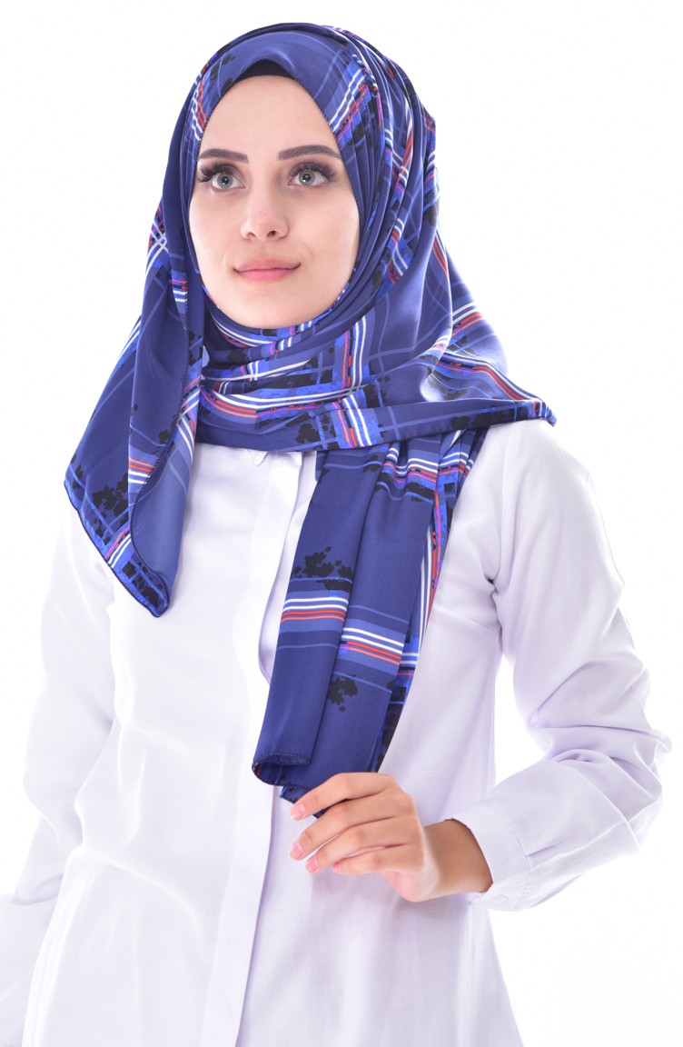شال بتصميم مُطبع 50431-01 لون كحلي 50431-01