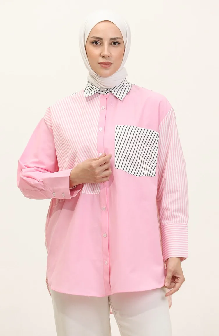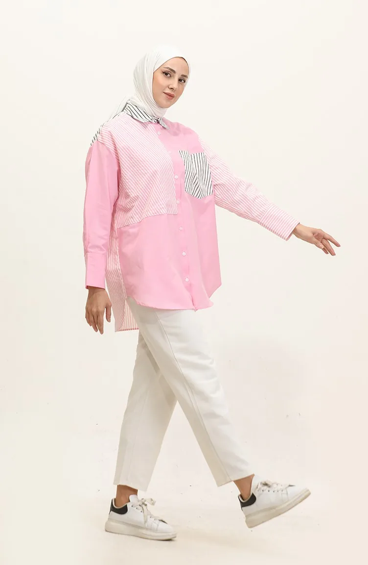 قميص مُخطط مُزين 4812-02 لون وردي 4812-02