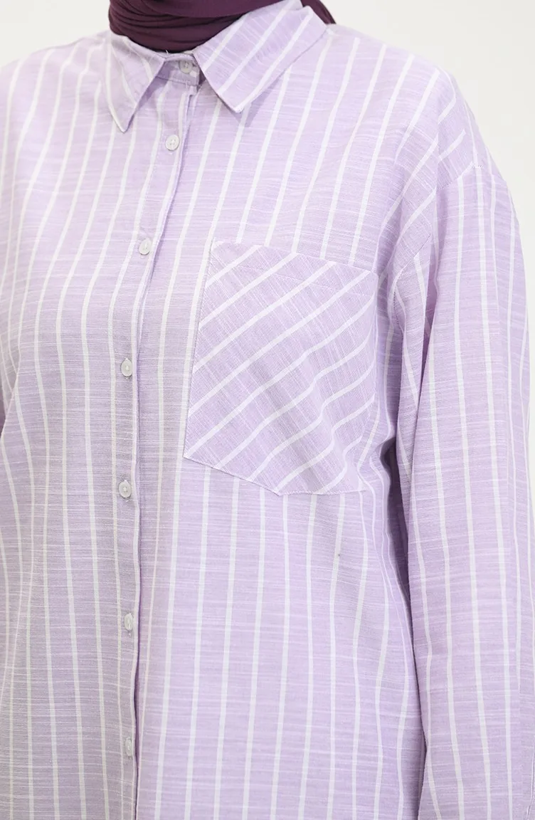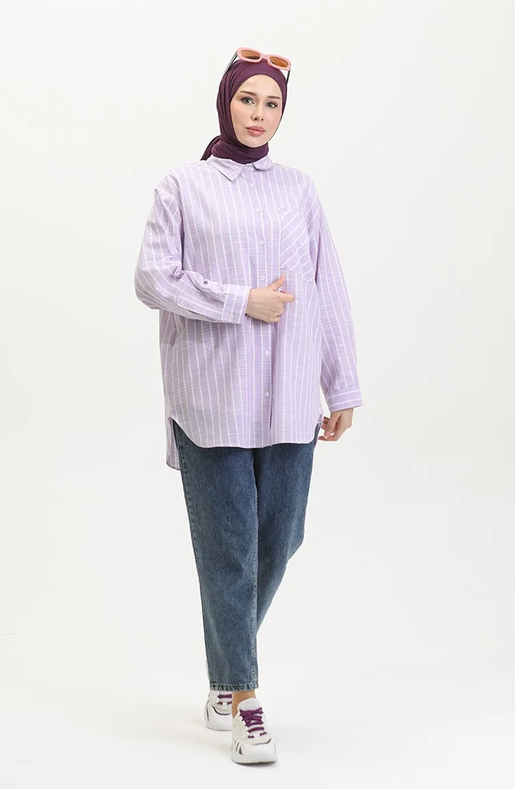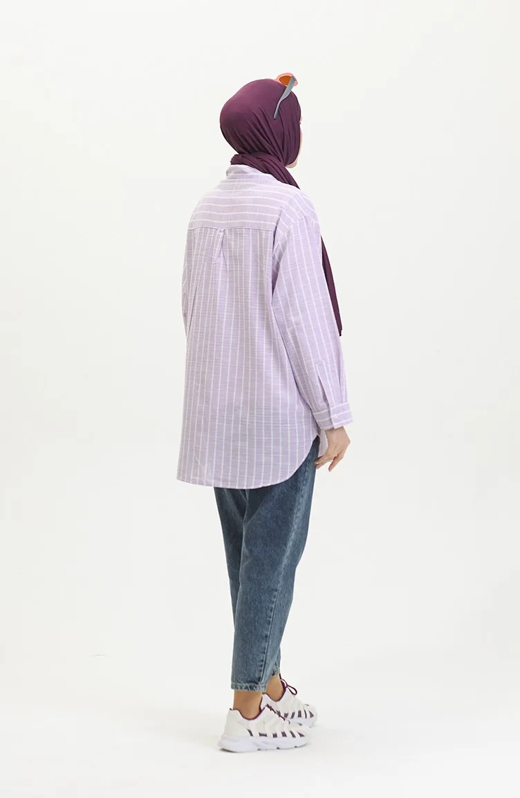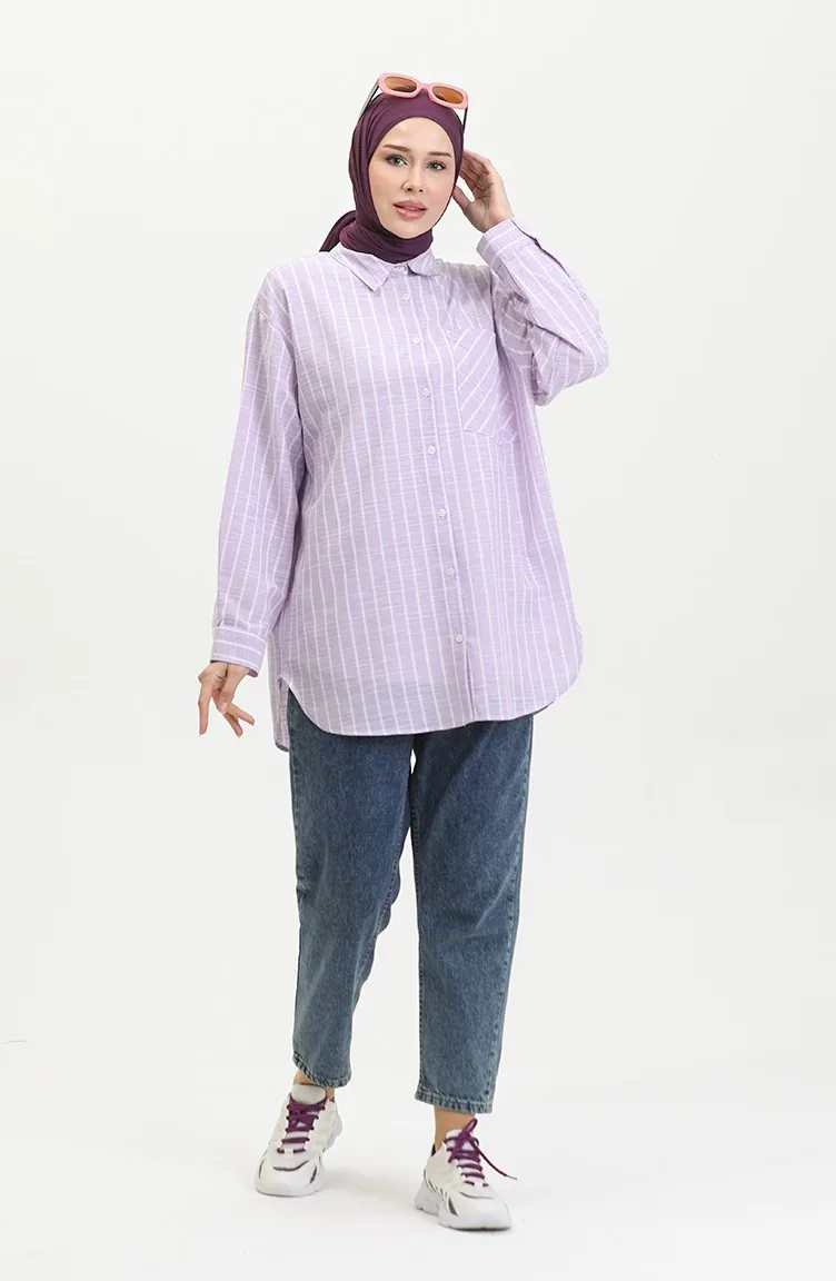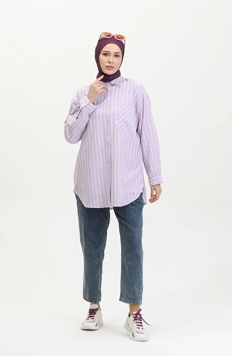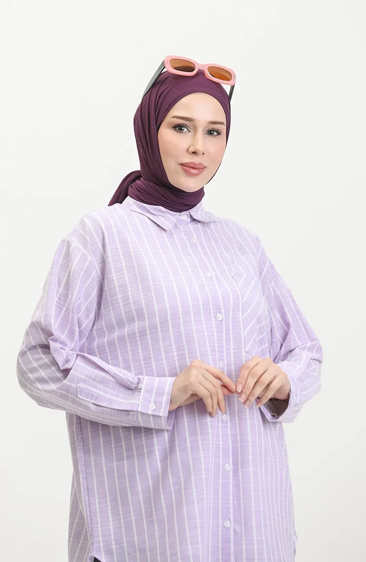 اللون: ليلكي. نسيج القطن لديه نسيج ماص. صمم من القماش المخطط. المنتج ذو الاستخدام بدون تبطين. المنتج طويلة الأكمام. ياقة القميص تفضل في كثير من الكومبينات. مناسب لجميع المواسم. هناك مقاسات كبيرة.