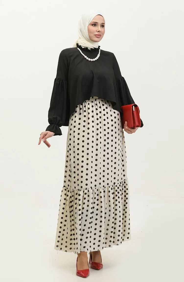 استخدم فيه اللون الأسود. قماش البوليستر لا يحتاج كثيرا إلى الكوي. ذو مظهر سادة. المنتج ذو الاستخدام بدون تبطين. المنتج طويلة الأكمام. Dik Yaka. قماشه مناسب لجميع المواسم. نساء. القياس التي في الصورة هي قياس العارضة.