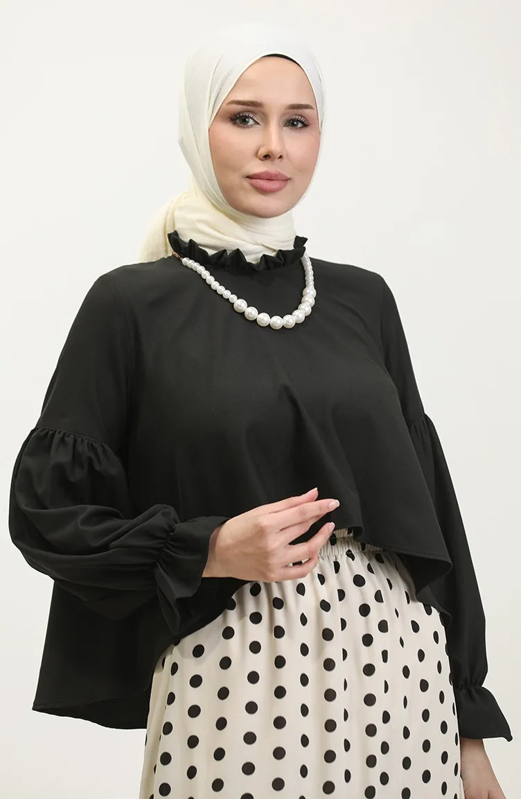 بلوزة قصيرة سادة 2038-01 أسود 2038-01