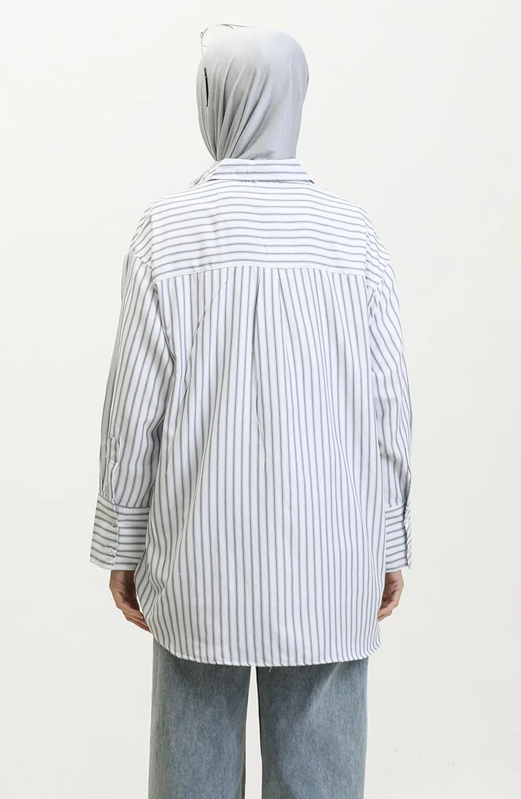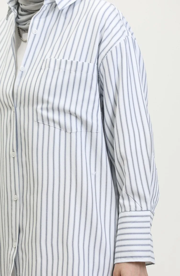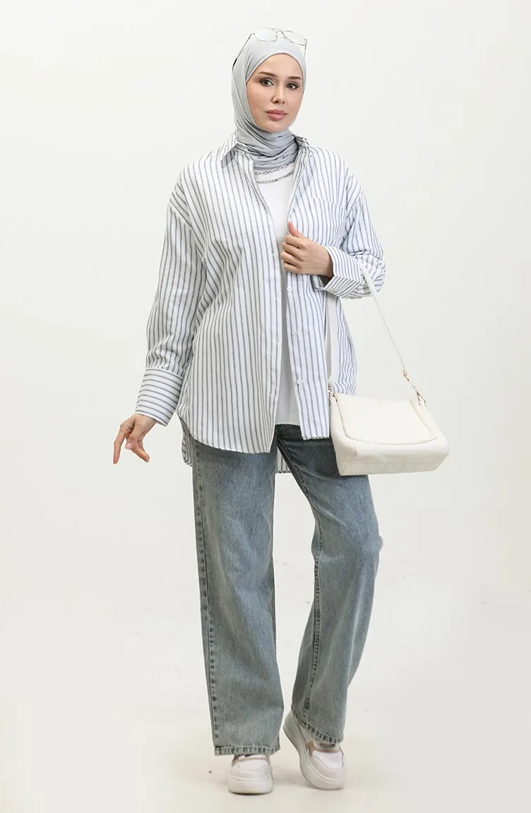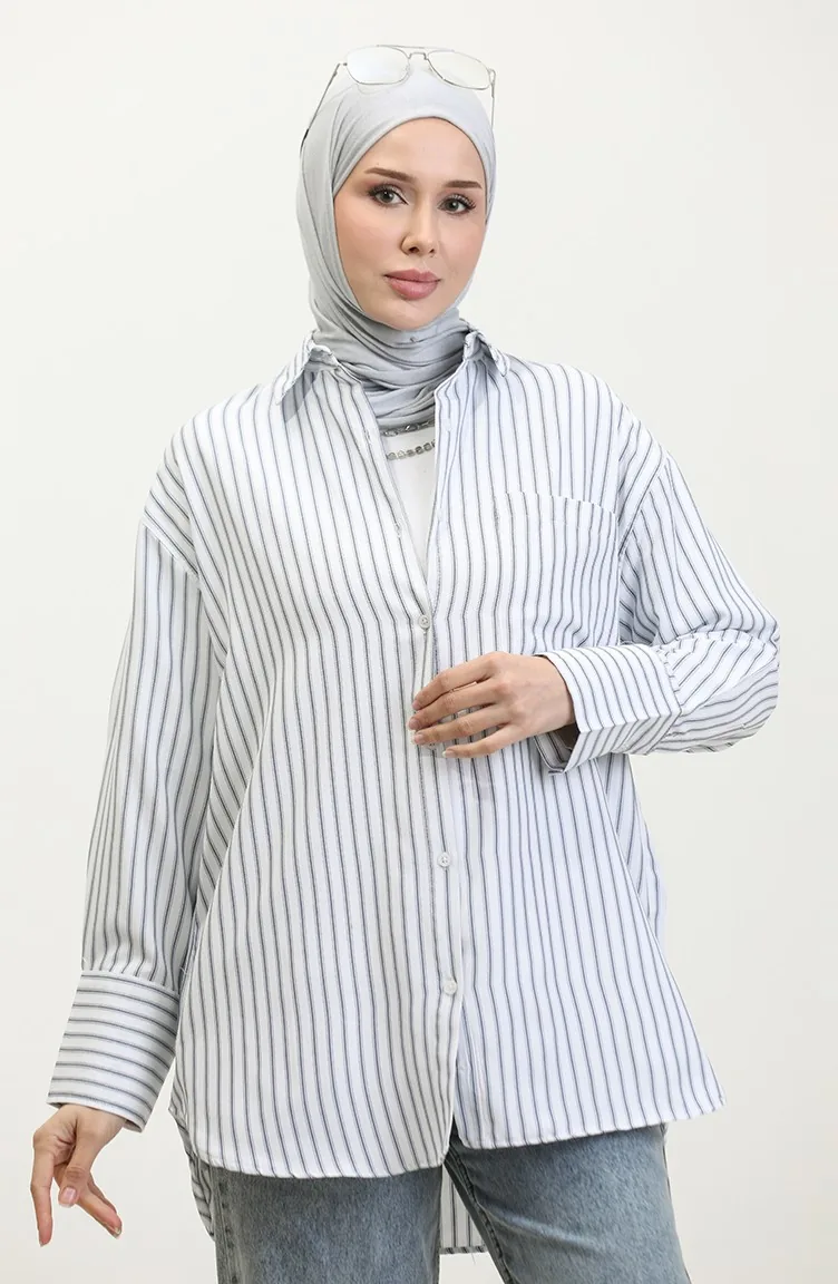 نسيج القطن لديه نسيج ماص. صمم من القماش المخطط. المنتج ذو الاستخدام بدون تبطين. المنتج طويلة الأكمام. ياقة القميص تفضل في كثير من الكومبينات. مناسب لجميع المواسم. هناك مقاسات كبيرة.