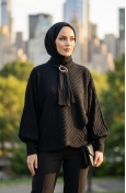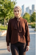 بلوزة بياقة برباط 71370-02 لون المنك 71370-02