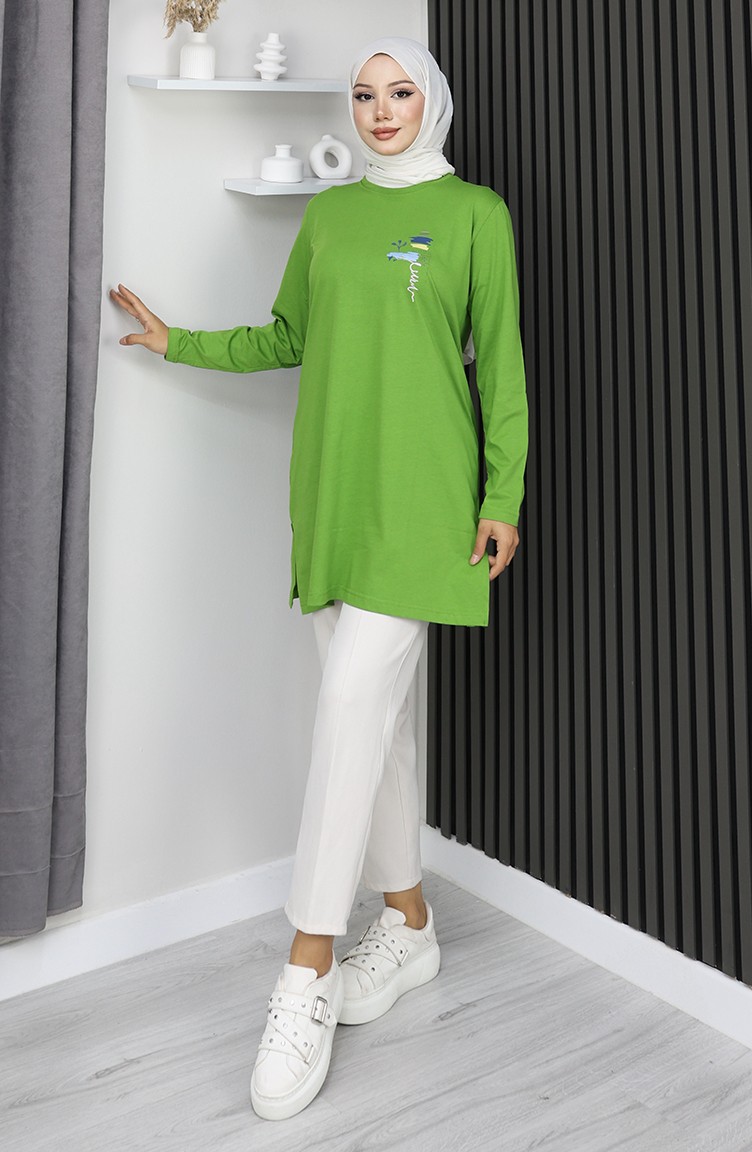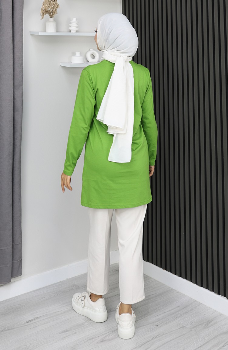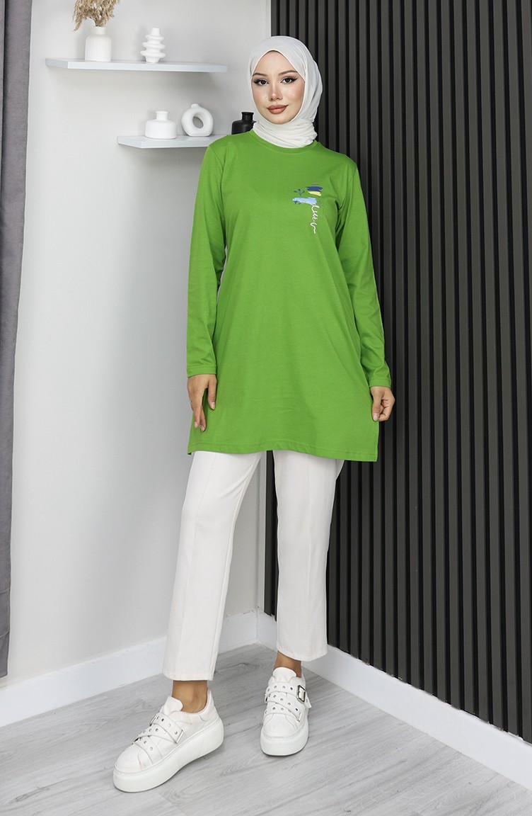 تونيك رقمي من القماش بفتحة 9135-03 أخضر 9135-03