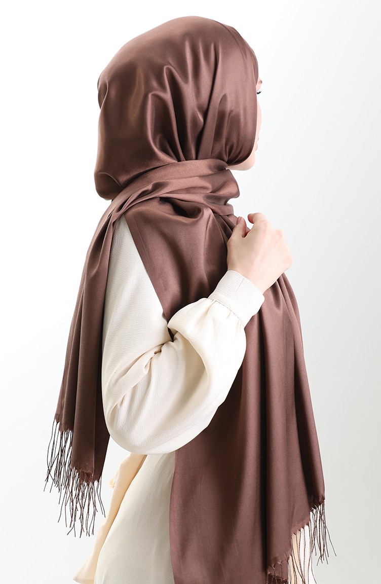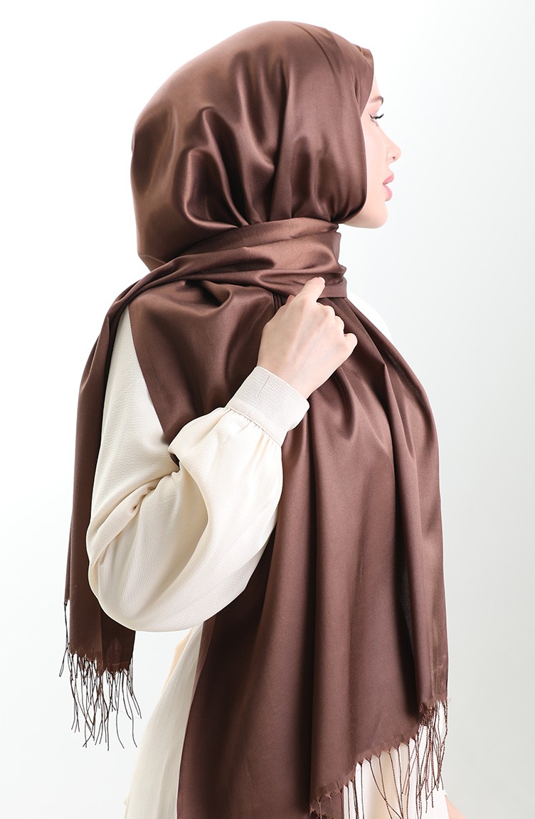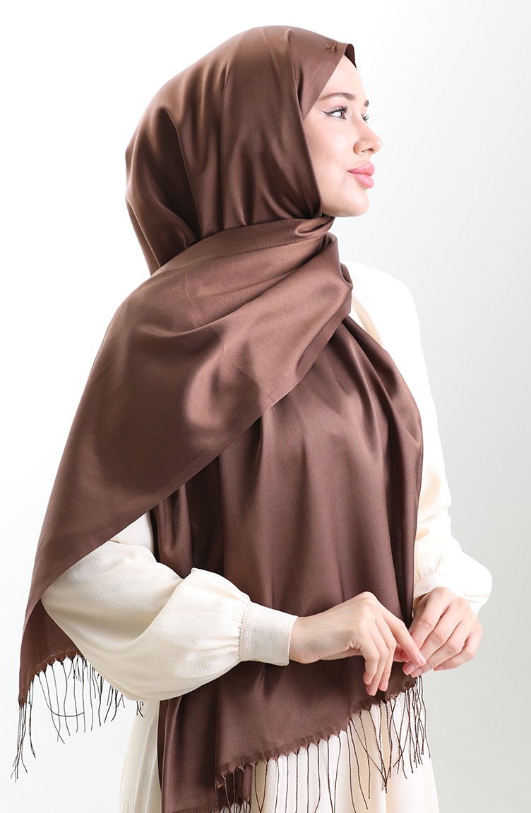 شال فيسكوز طويل ذو شراشيب 70331-15 بني 70331-15