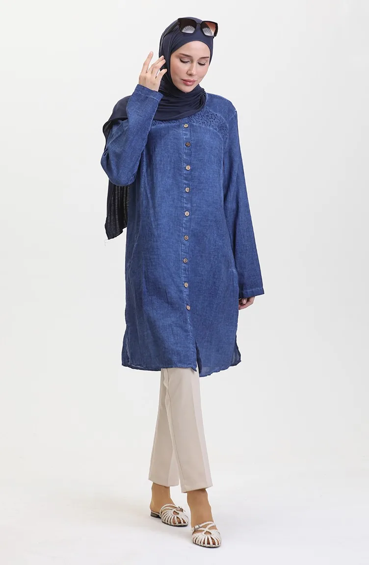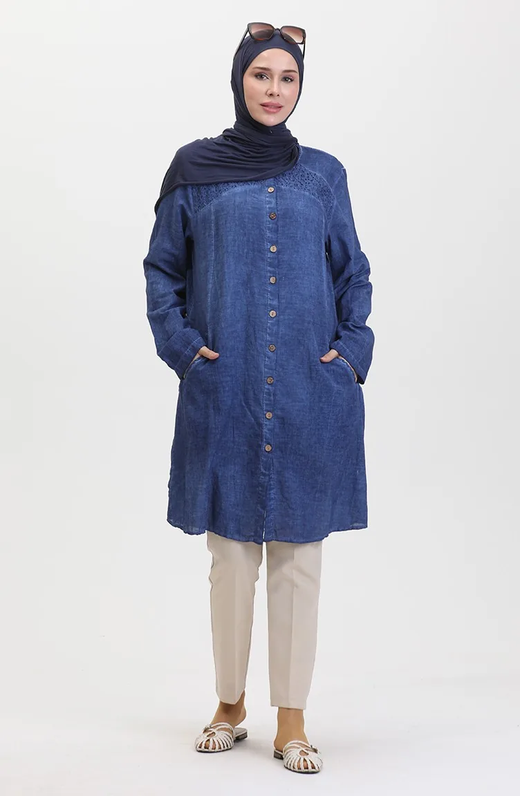 نيلي اللون استخدامها. Şile Bezi. ذو مظهر سادة. المنتج ذو الاستخدام بدون تبطين. من الممكن استعمال المنتج بدون ياقة مع كل ملابس. مناسب للاستخدام في الصيف. القياس التي في الصورة هي قياس العارضة.