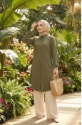 تونيك فيسكوز بأكمام مرنة 0171-12 لون القهوة بالحليب 0171-12