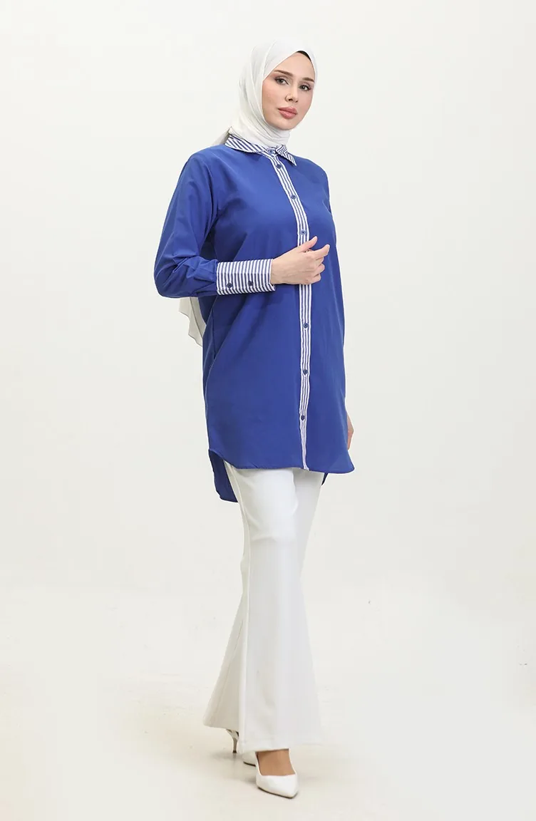 استخدم فيه اللون الأزرق الملكي. نسيج القطن لديه نسيج ماص. صمم من القماش المخطط. المنتج ذو الاستخدام بدون تبطين. المنتج طويلة الأكمام. ياقة القميص تفضل في كثير من الكومبينات. قماشه مناسب لجميع المواسم. هناك مقاسات كبيرة.